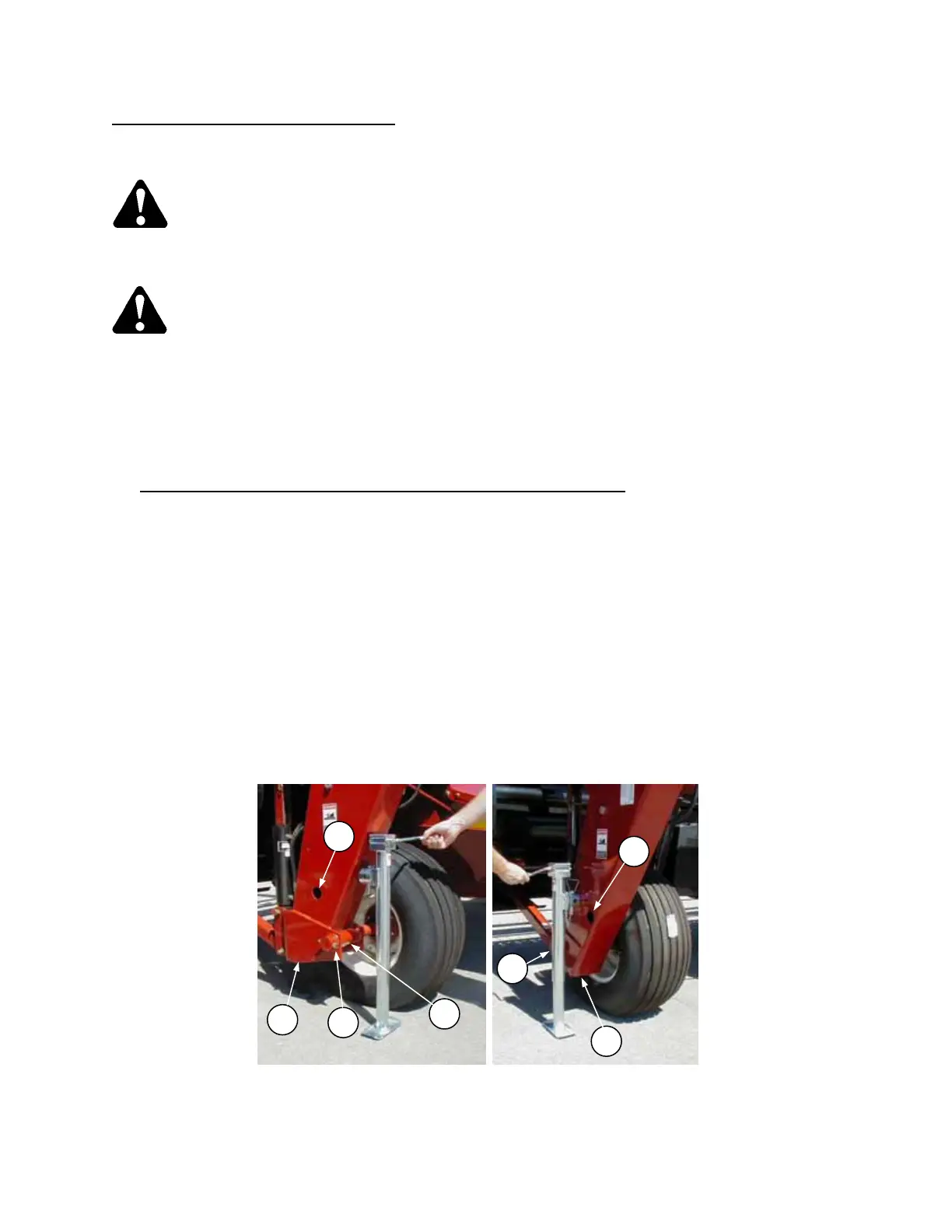 3. Position jack on mount provided on frame leg and raise enough to place a 12” (300 mm) block under