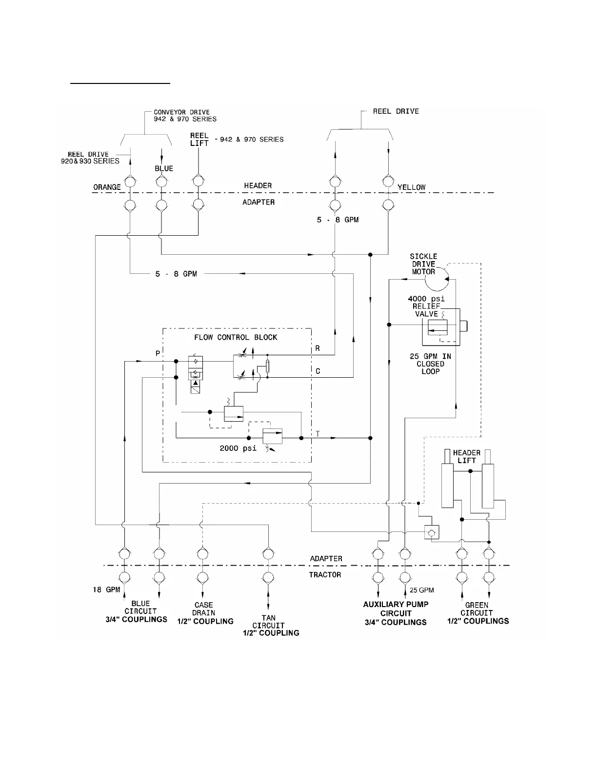 NOTE: Available flow from tractor for circuits other than auxillary circuit is 22 GPM.