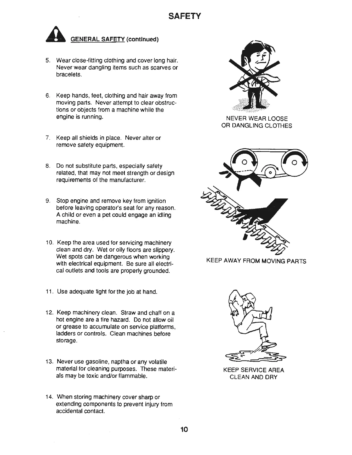 10. Keep the area used for servicing machinery