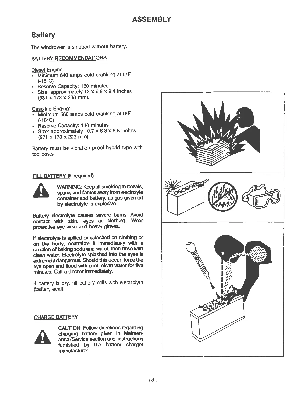 If battery is dry, fill battery cells with electrolyte