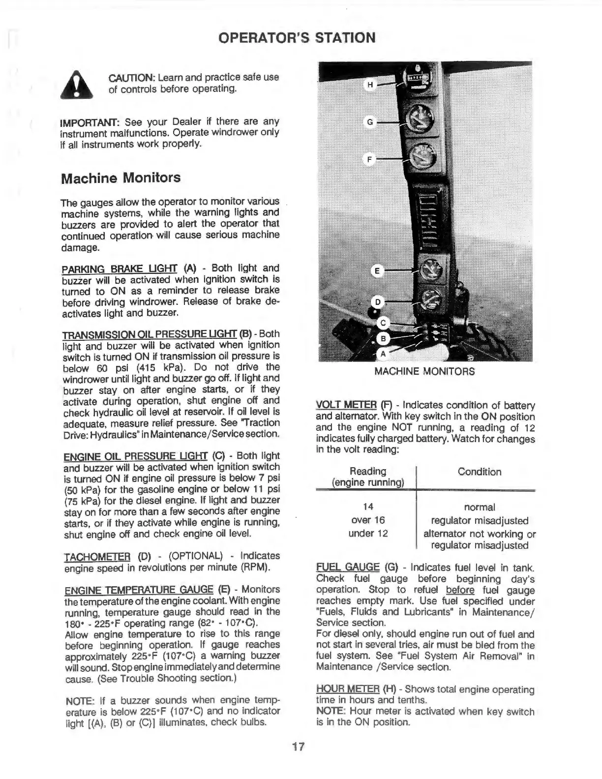 instrument malfunctions. Operate windrower only