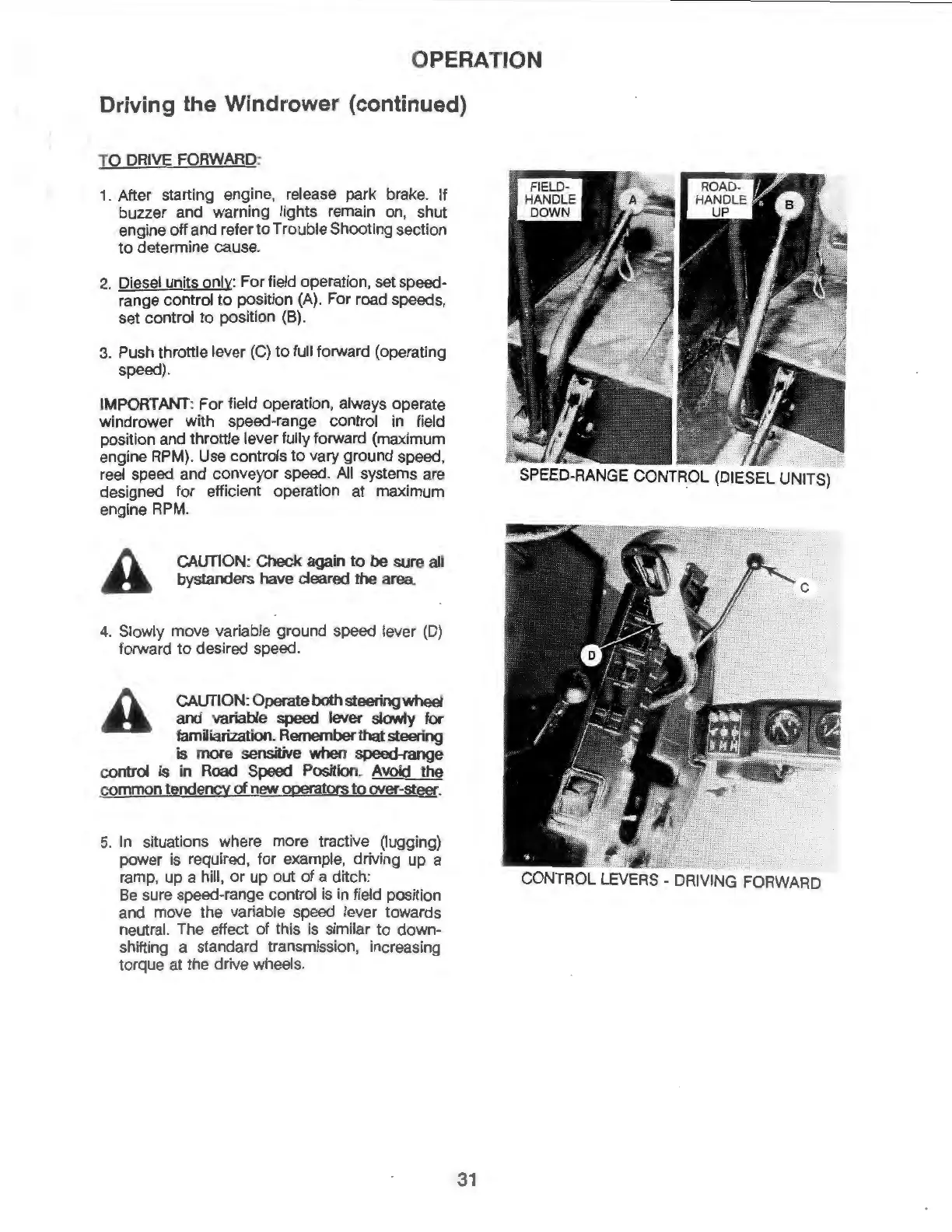 CONTROL LEVERS • DRIVING FORWARD