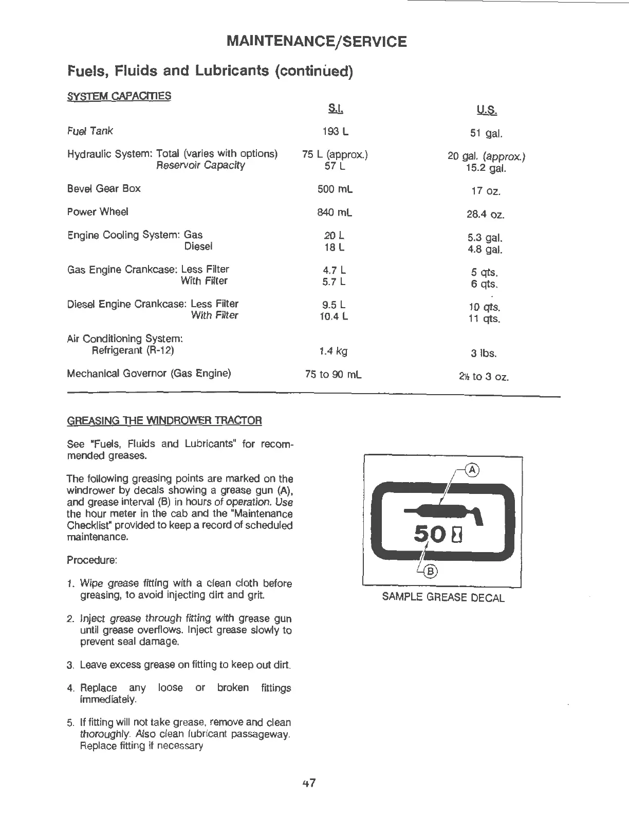 Fuels, Fluids and Lubricants (continued)