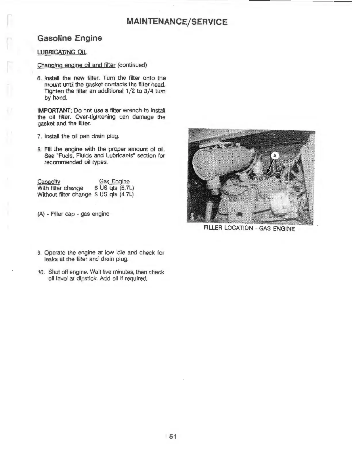 Changing engine oil and filter (continued)