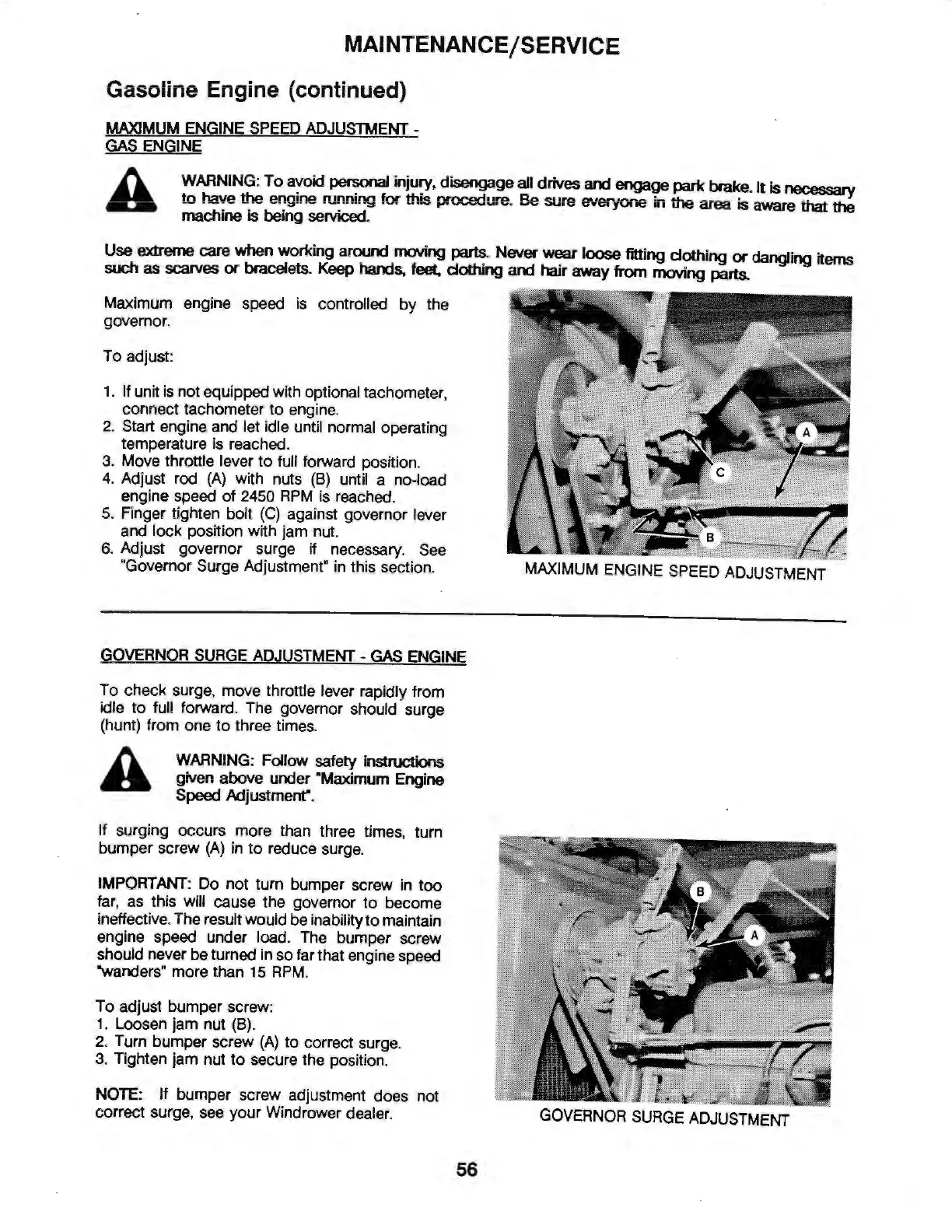 6. Adjust governor surge if necessary. See