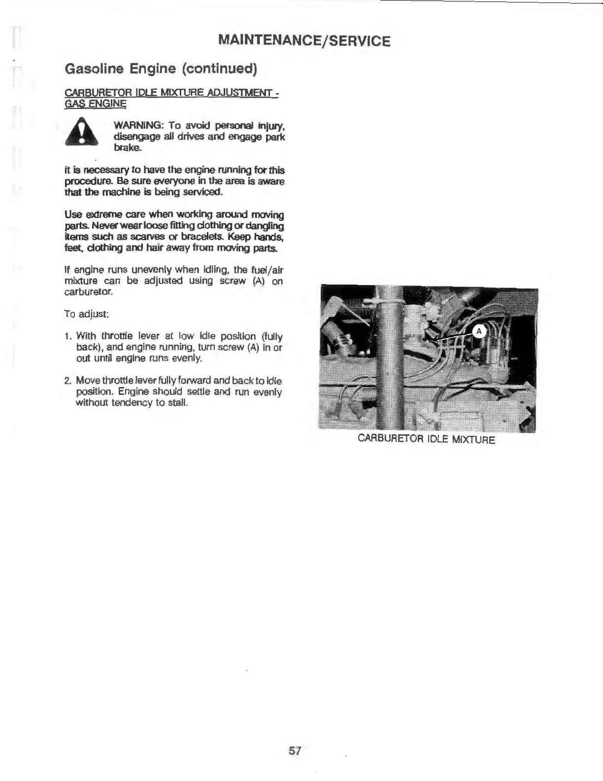 back), and engine running, turn screw (A) in