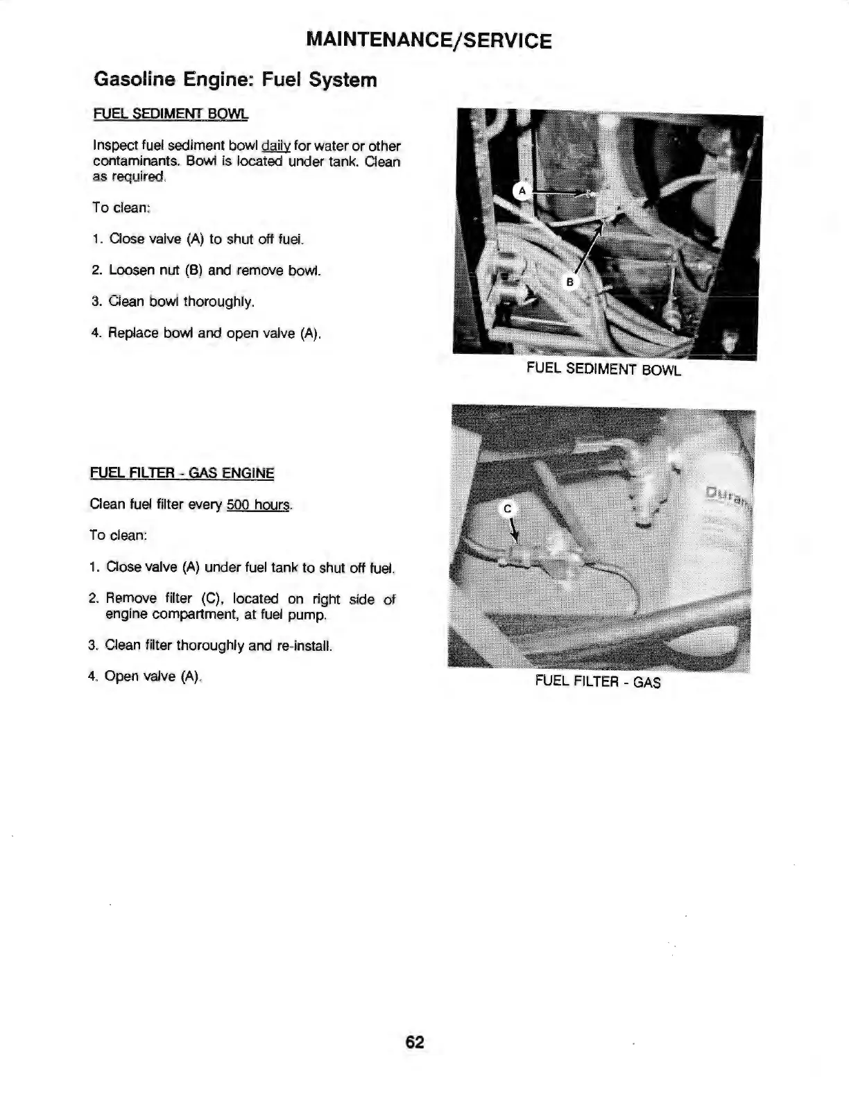 Inspect fuel sediment bowl daily