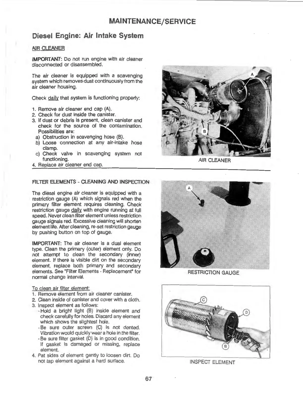 speed. Never clean filter element unless restriction