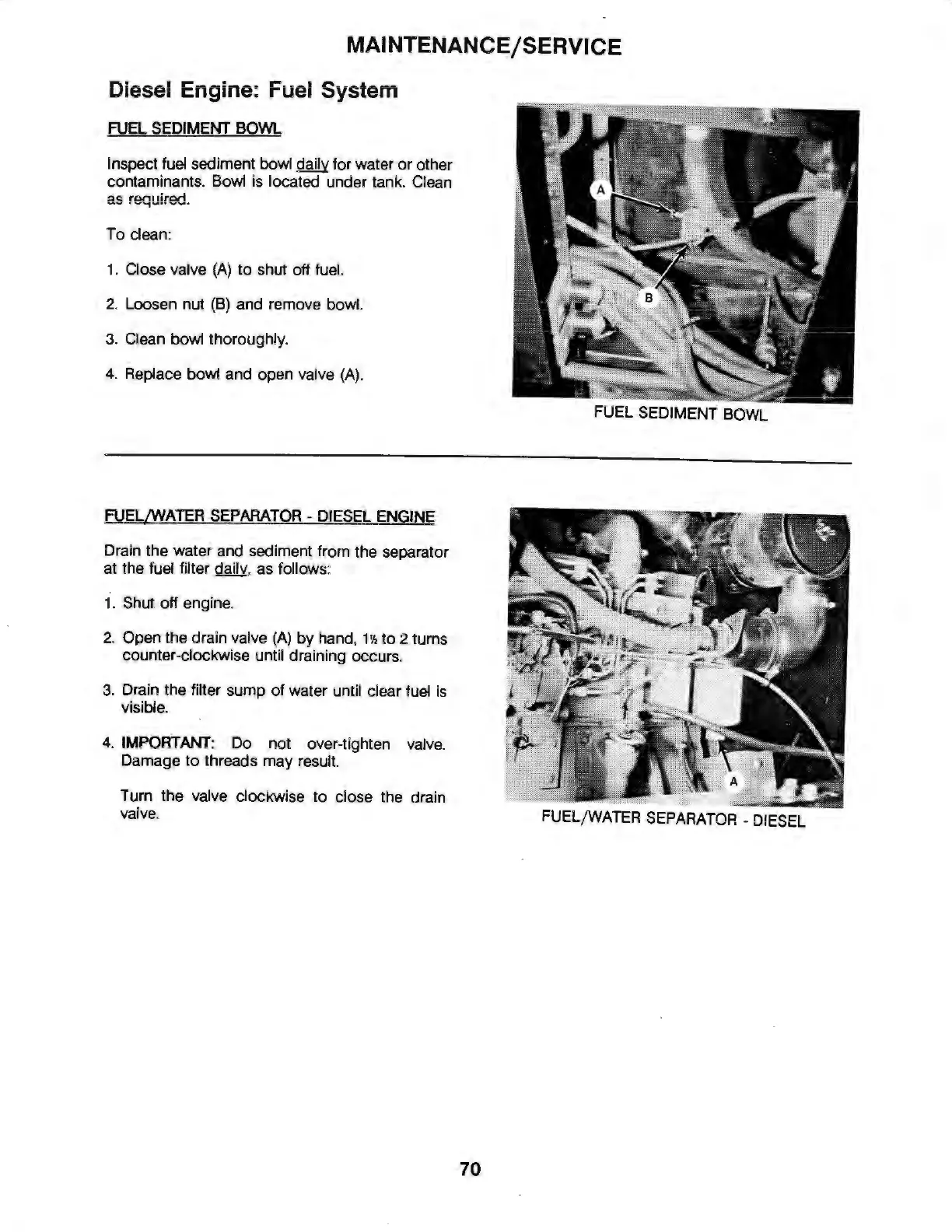 at the fuel filter daily. as follows:
