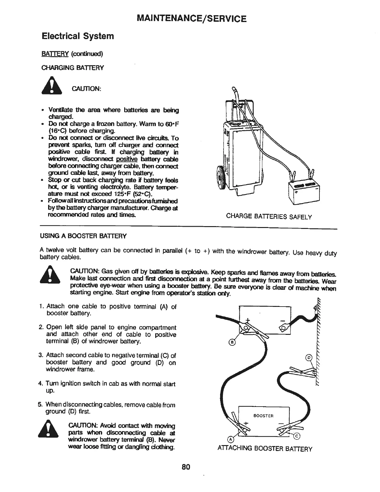 +) with the windrower battery. Use heavy