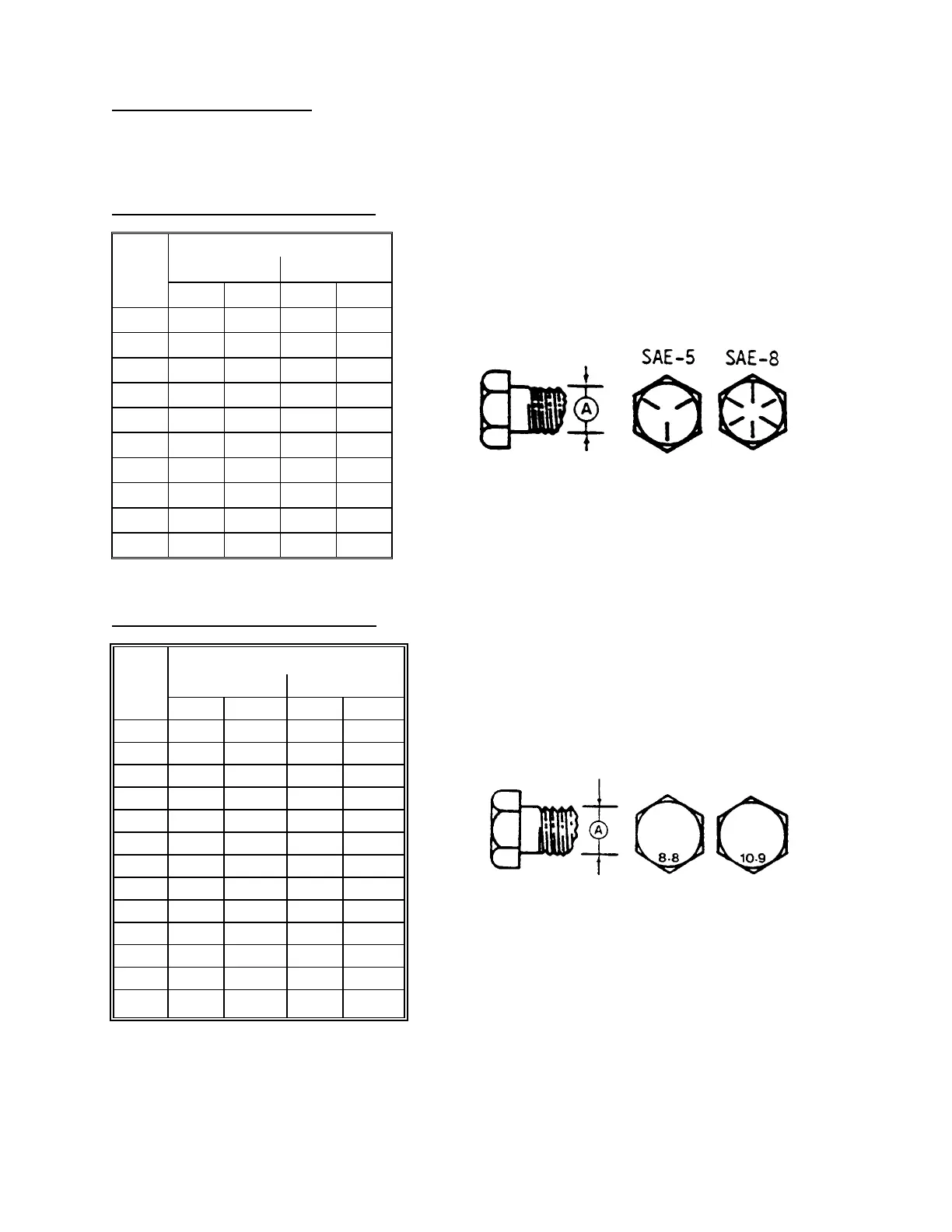 The tables shown below give correct torque values for various bolts and capscrews. Tighten all bolts to the