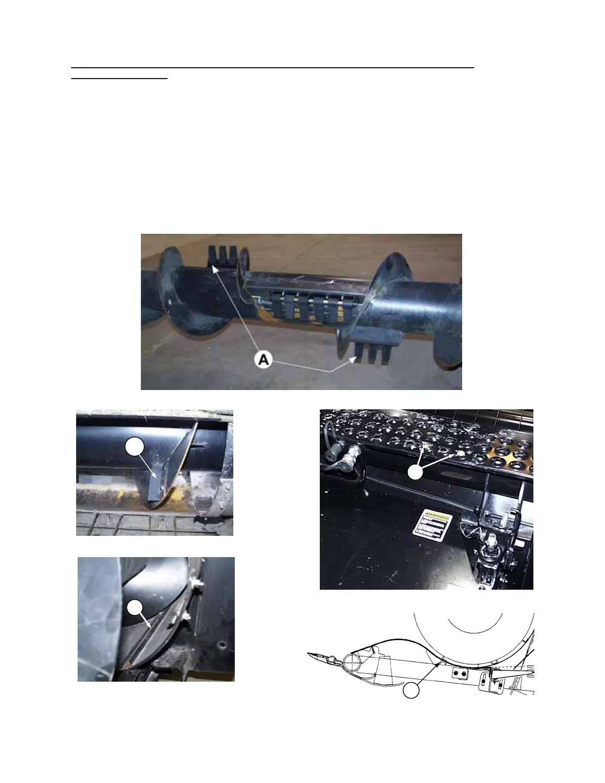 1. Install flighting-mounted deflectors (B). Deflectors are stored under platform at (C). Depending on crop