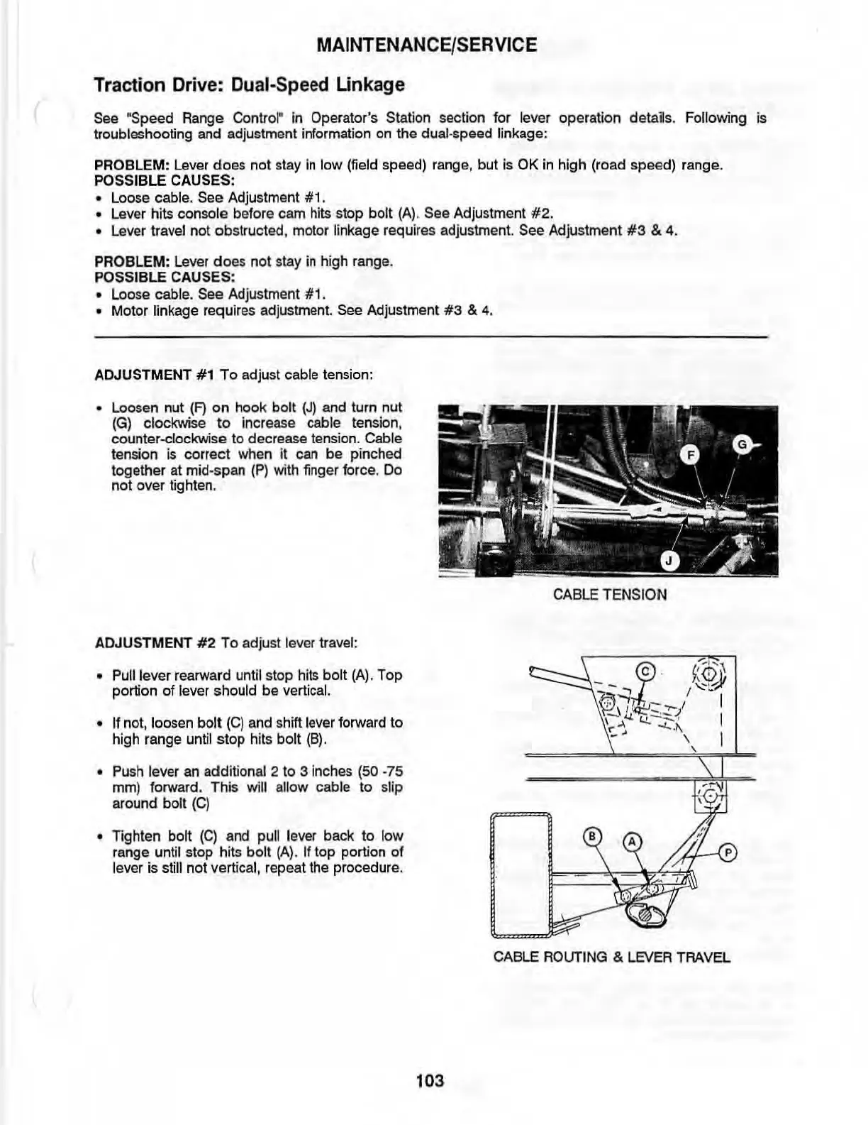 • Loose cable. See Adjustment #1.