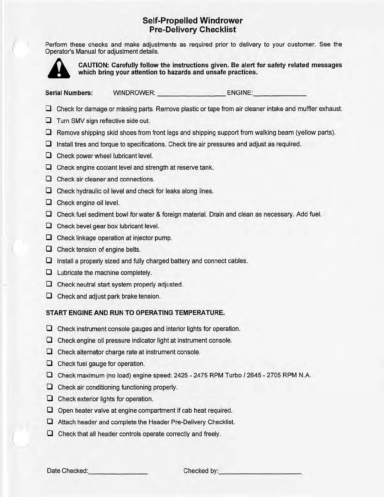 Pre-Delivery Checklist