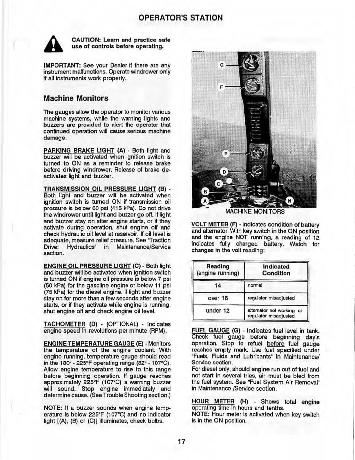 VOLT METER (F) -Indicates condition