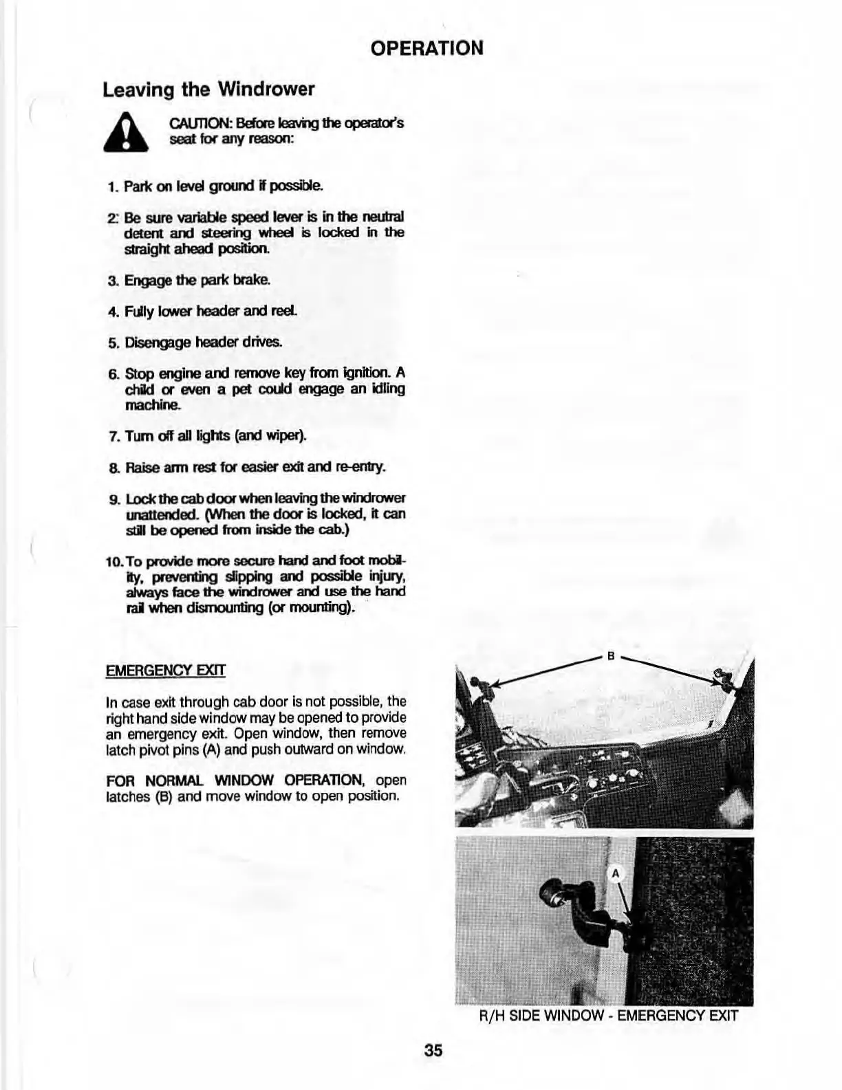 MacDon 9200 - Leaving the Windrower; Emergency Exit