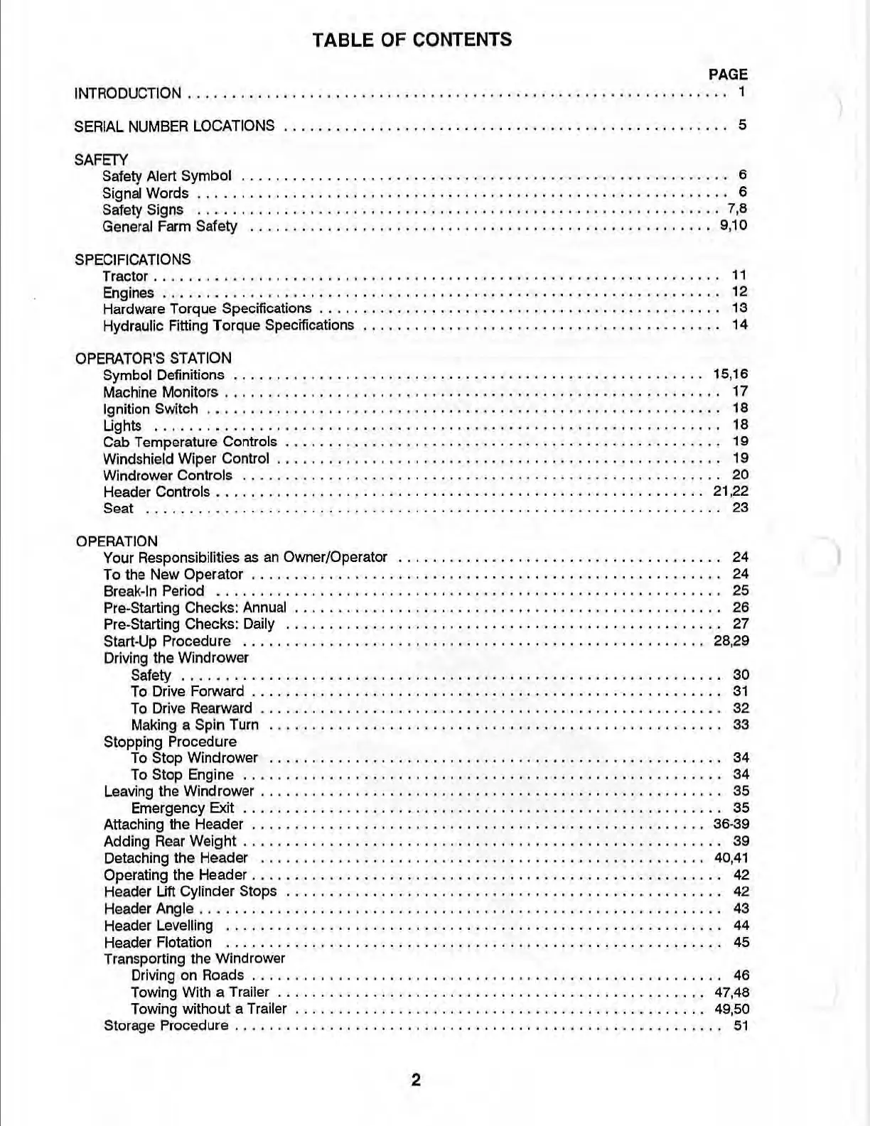 Operating the Header . . . . . . . . • . . . • . • • . • • . . . . . . . . . • • • • . . . . . . . • • • . . . . . . • . . . .