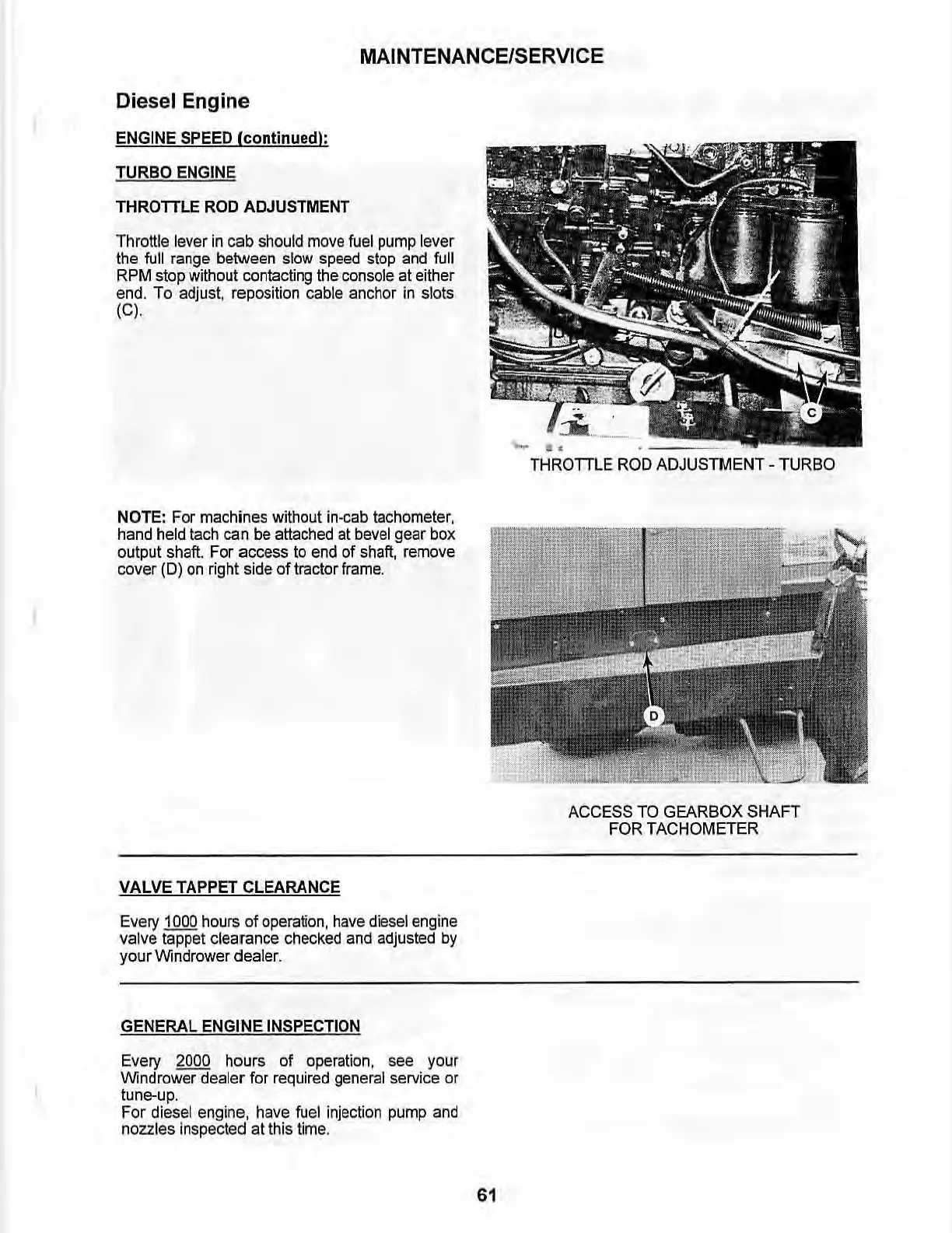 MacDon 9200 - Valve Tappet Clearance; General Engine Inspection