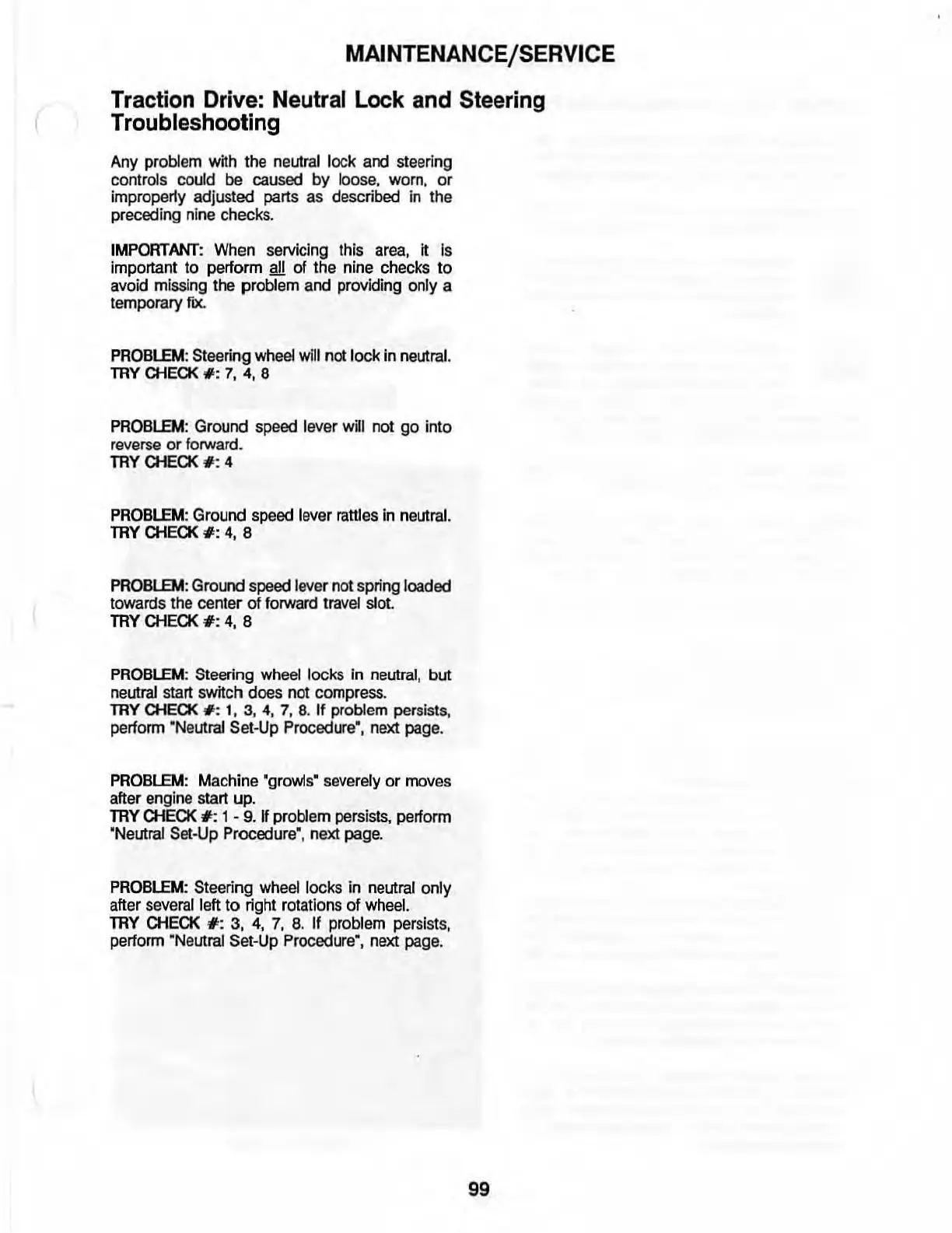 PROBlEM: Steering wheel locks in neutral, but