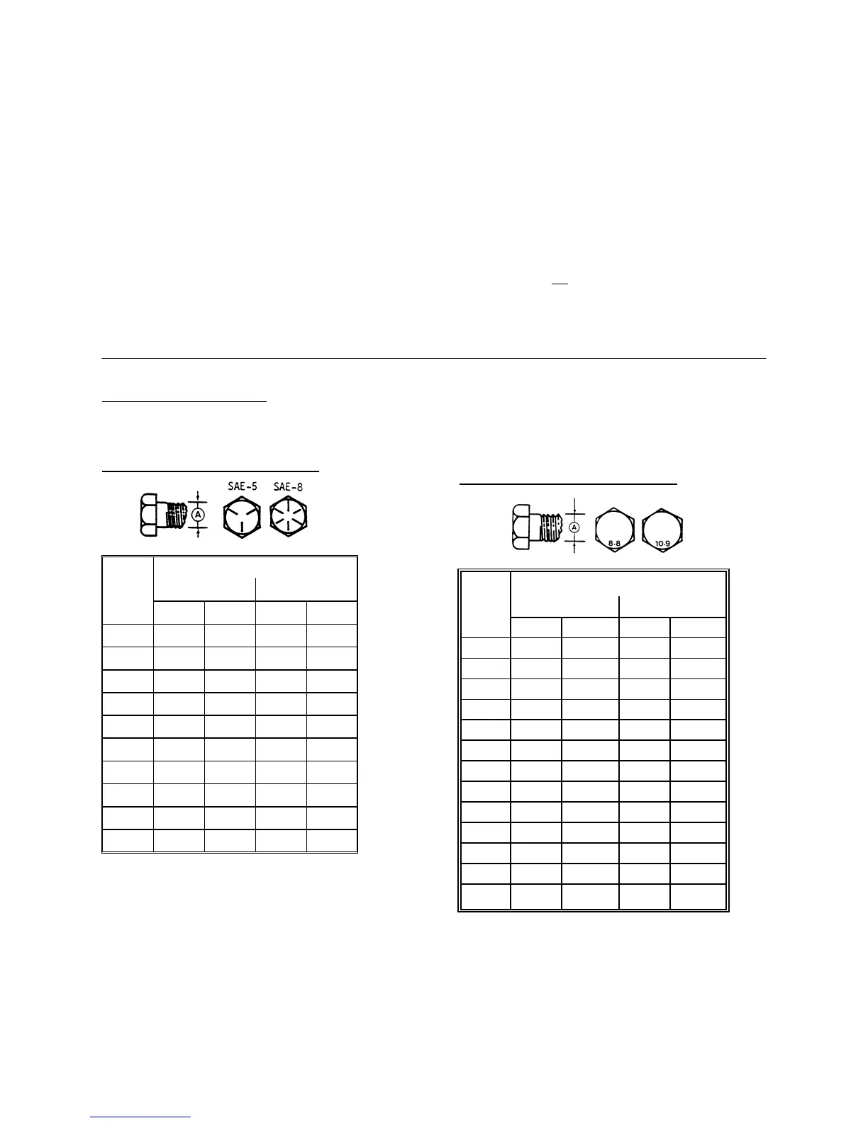 The tables shown below give correct torque values for various bolts and capscrews. Tighten all bolts to the torques