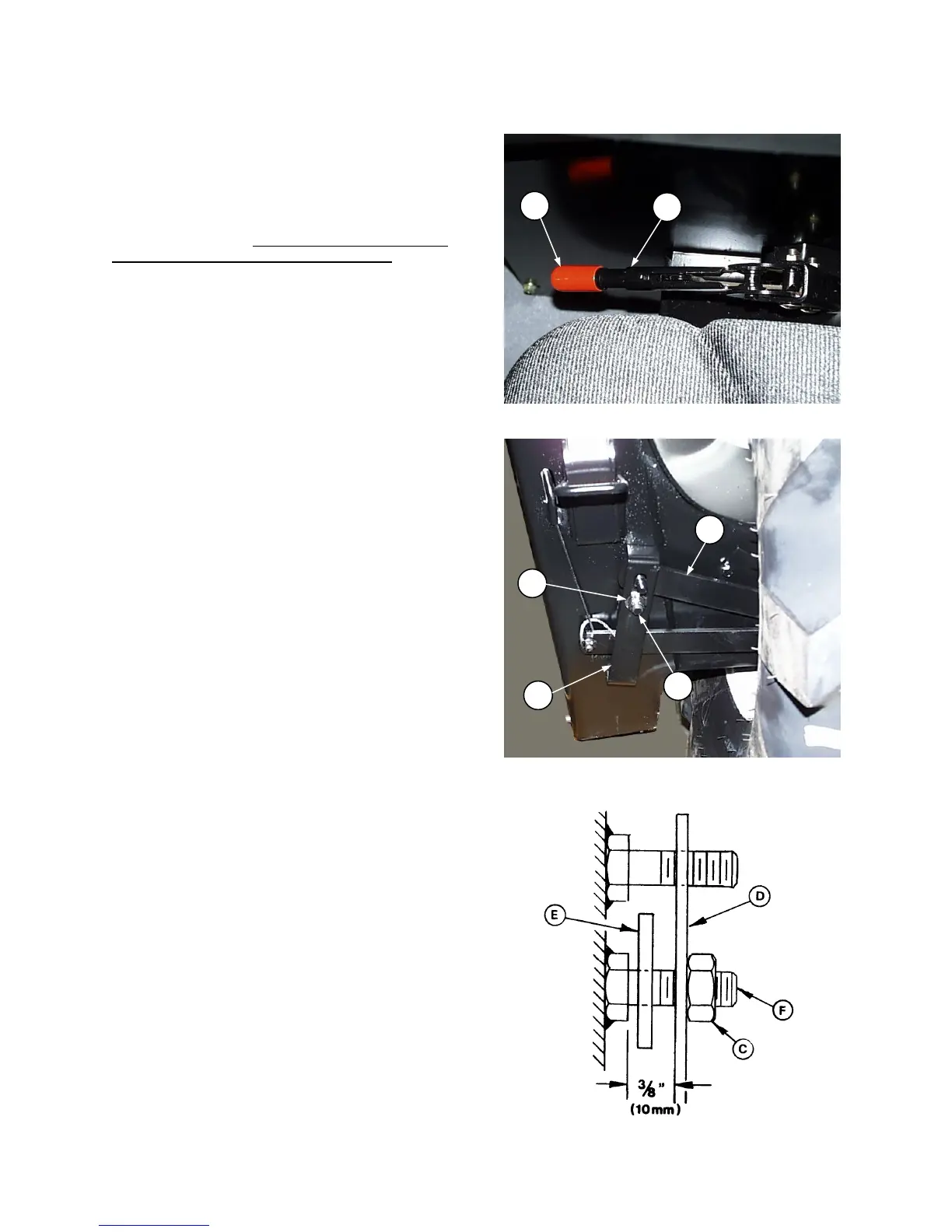 locknut (C) and retaining bar (D). Move link (E)