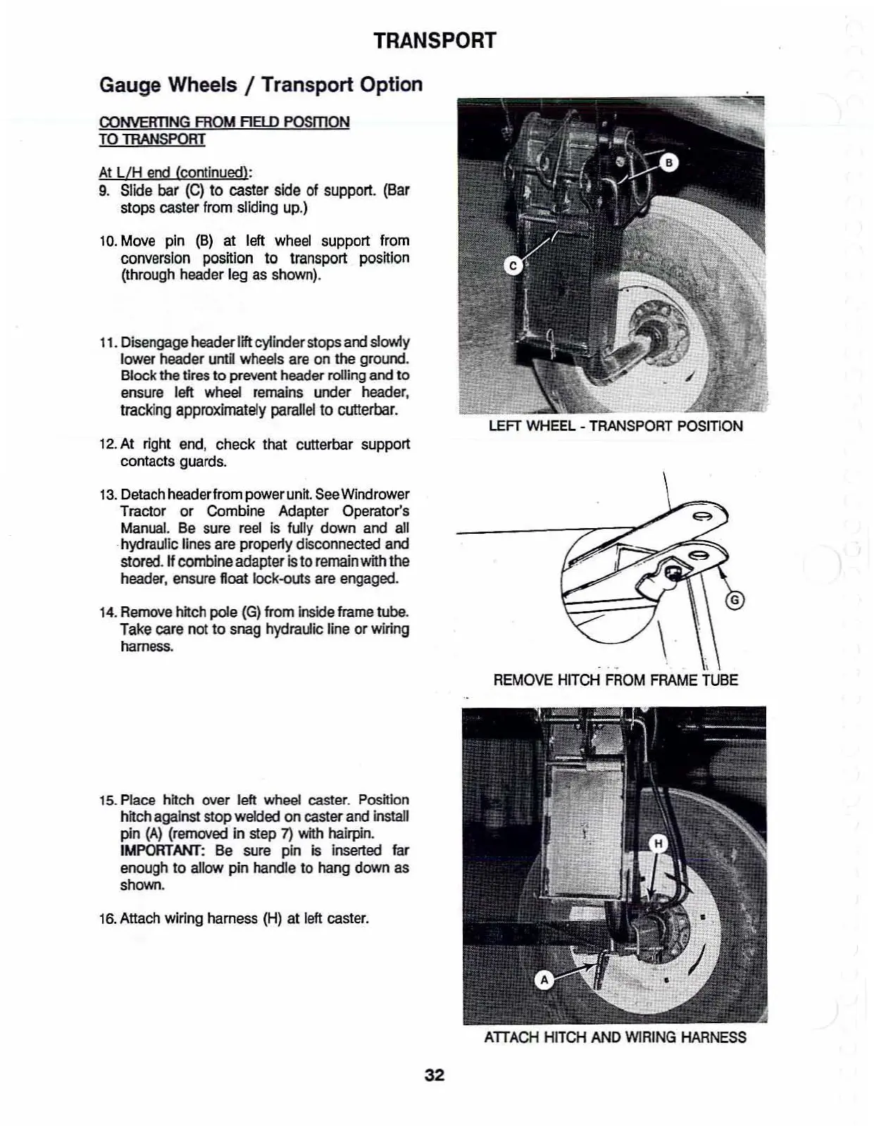 lower header until wheels are on the ground.