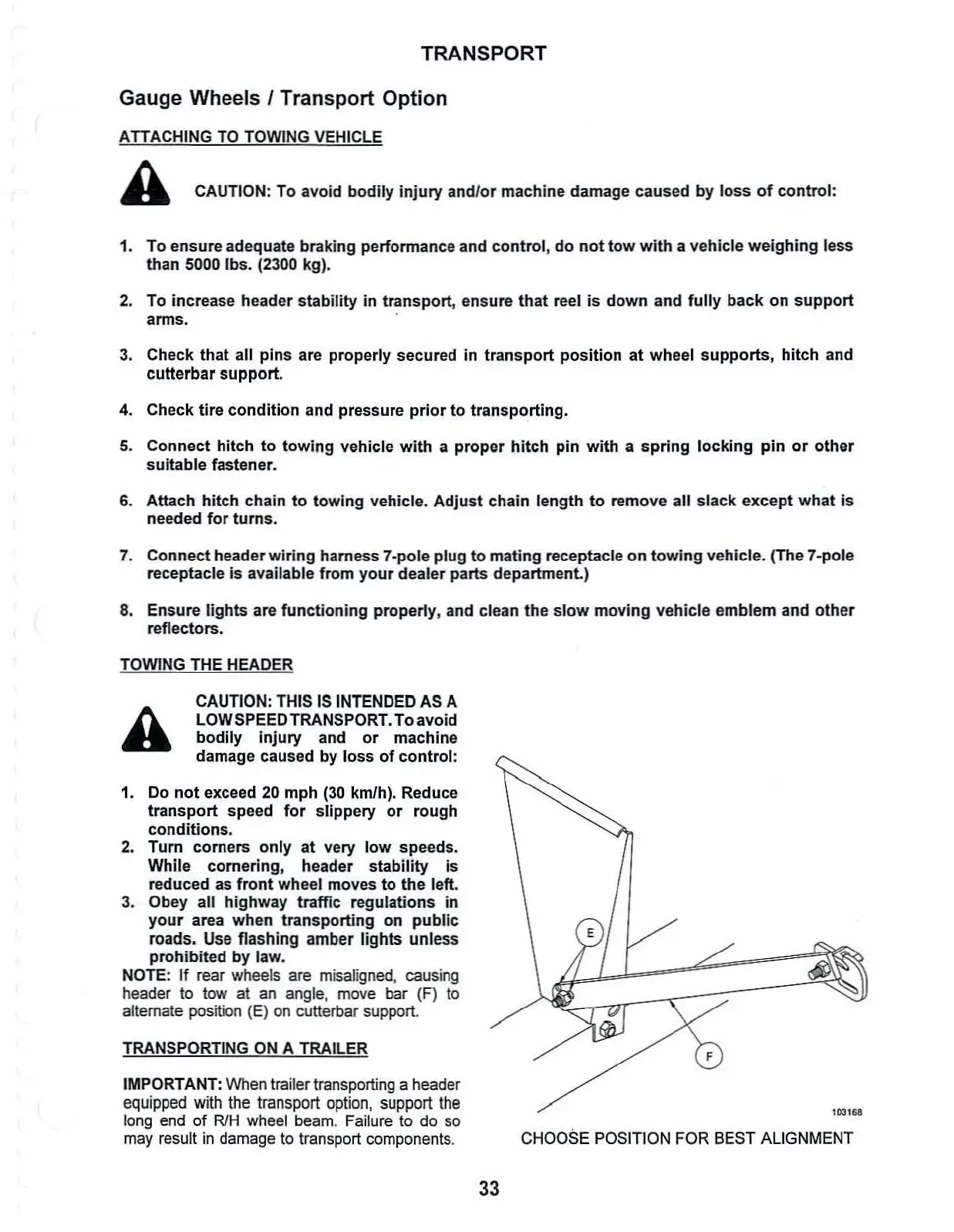 Check that all pins are properly secured in transport position at wheel supports, hitch and