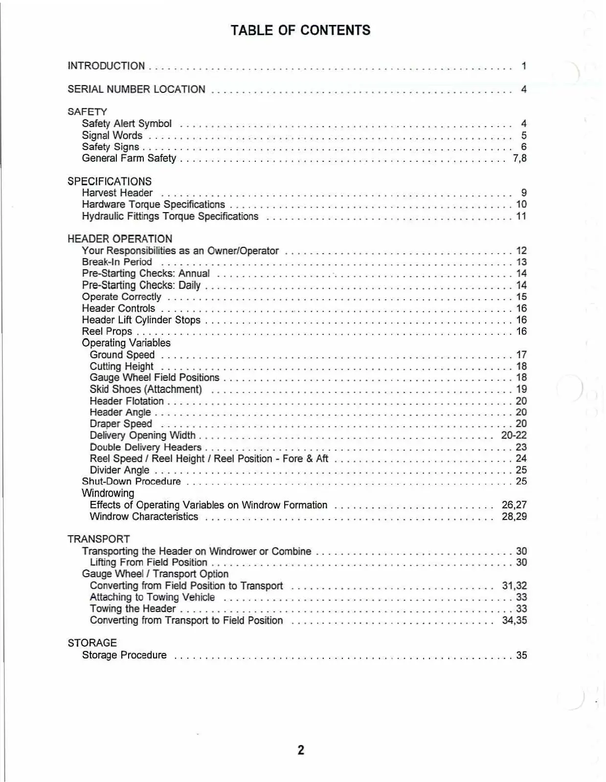 Harvest Header . . . . . . . • . . . • . . . . • . . . • . • . . . . . • . . . . . . . . • . .