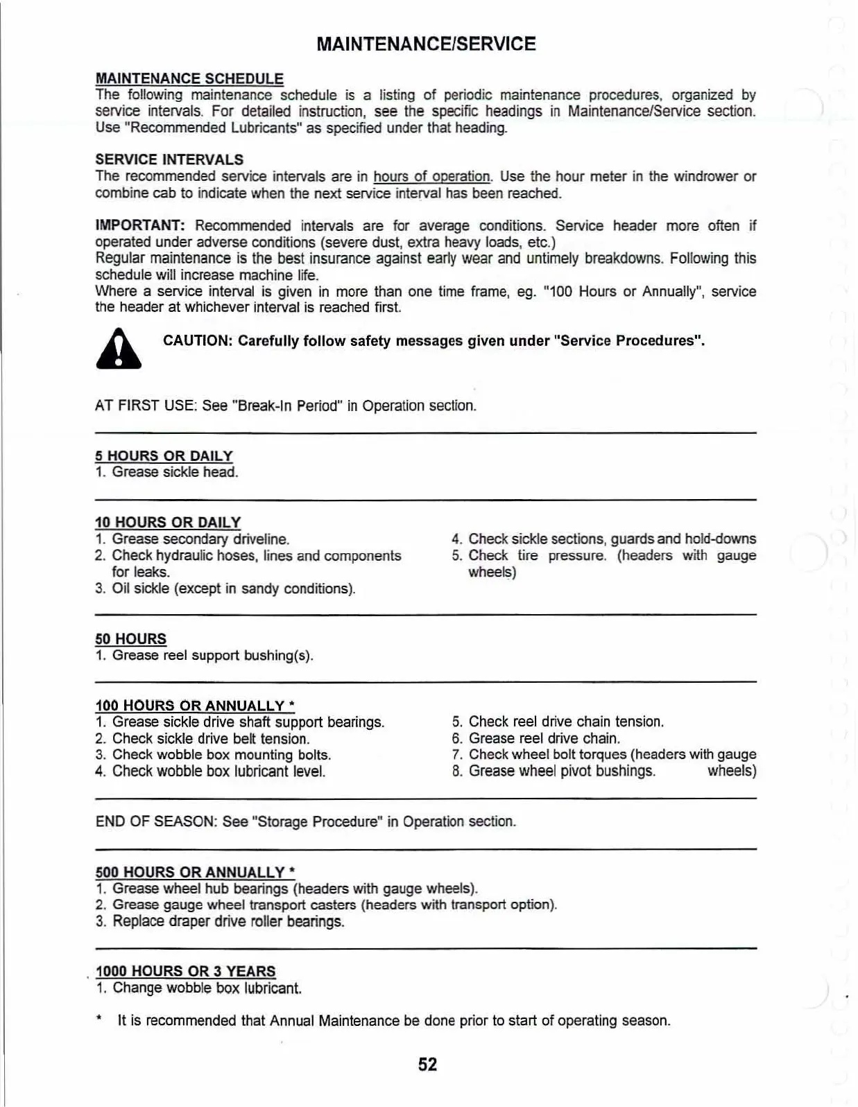 IMPORTANT: Recommended intervals are for average conditions. Service header more often