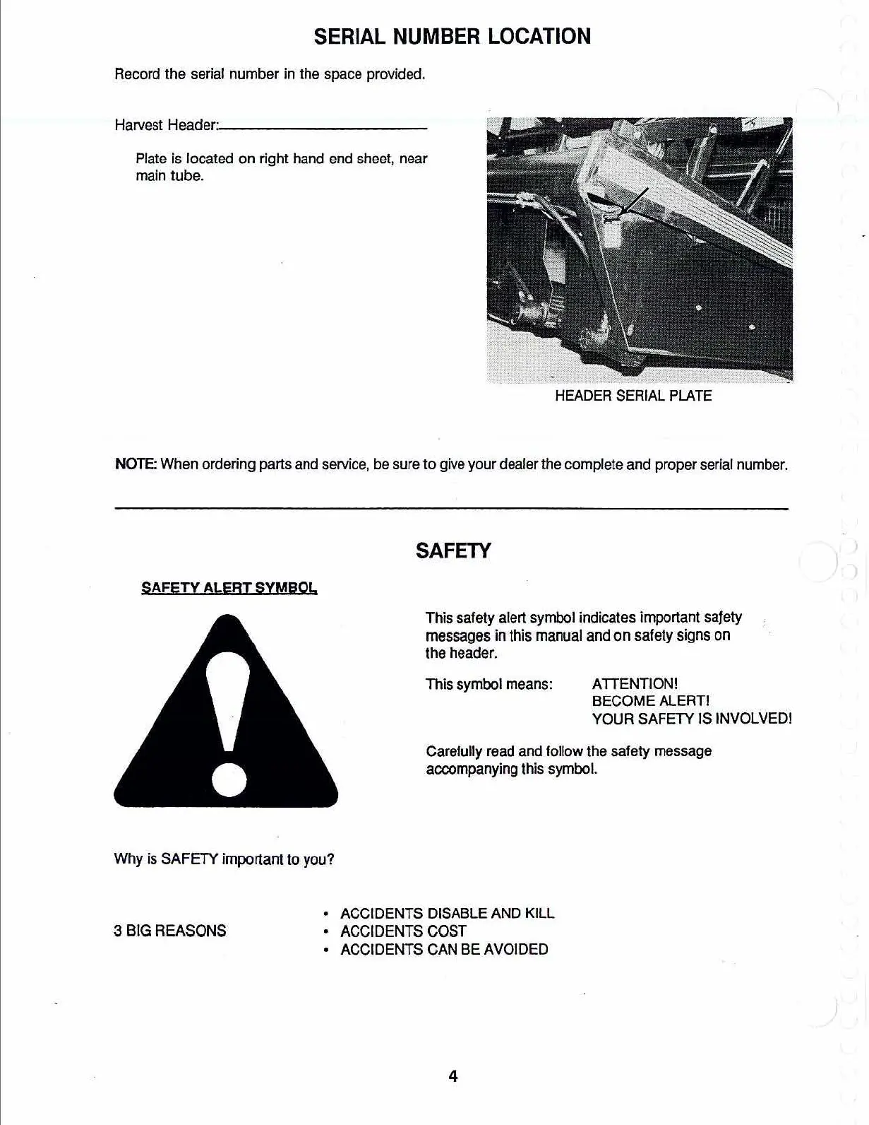 MacDon 960 - Serial Number Location; Safety; Safety Alert Symbol