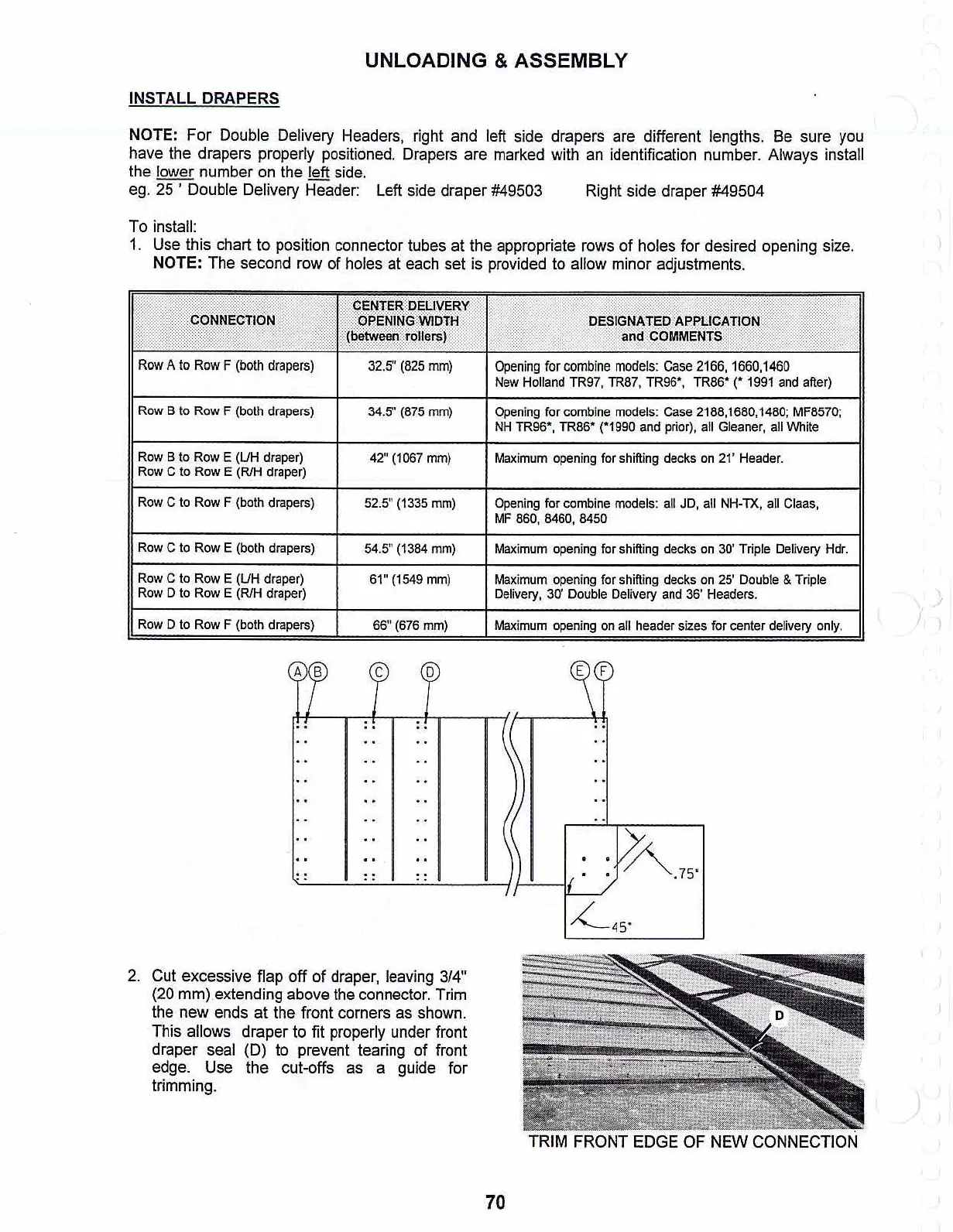 Double Delivery Headers, right and left side drapers are different lengths. Be sure you