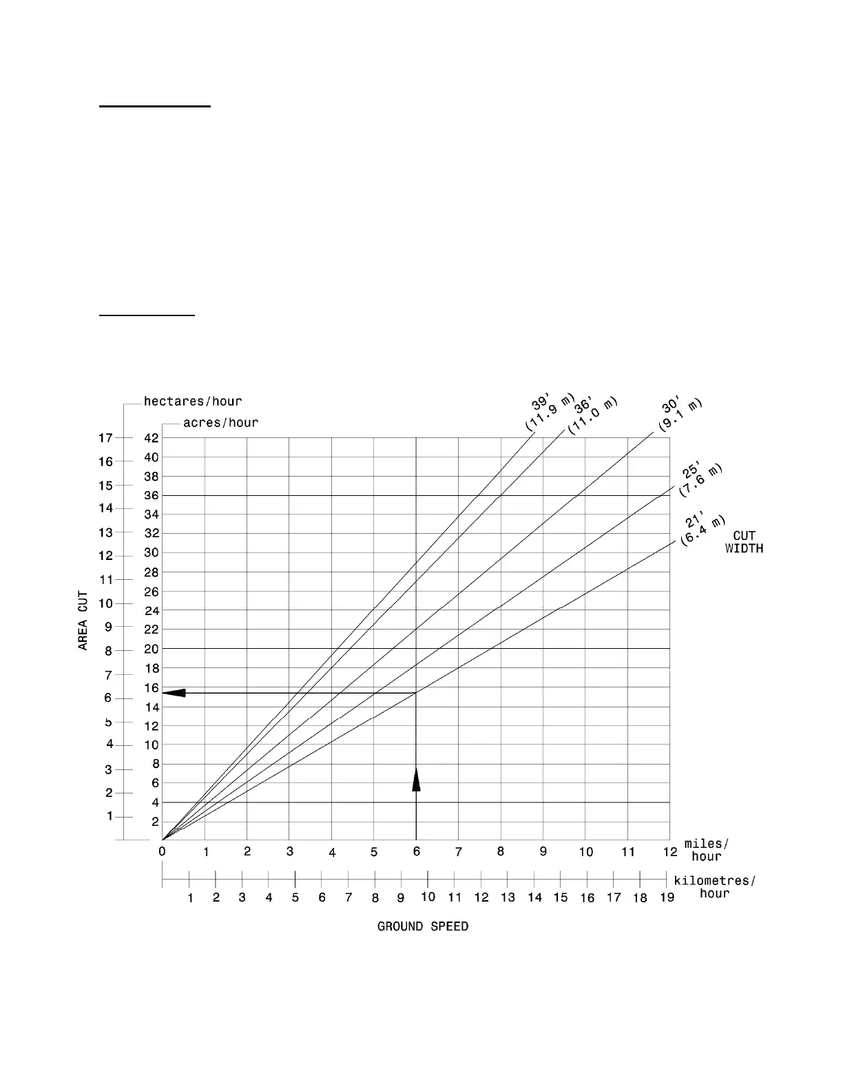 : At a ground speed of 6 miles per hour (10 km/h) with a 21 ft. header, the area cut in one hour