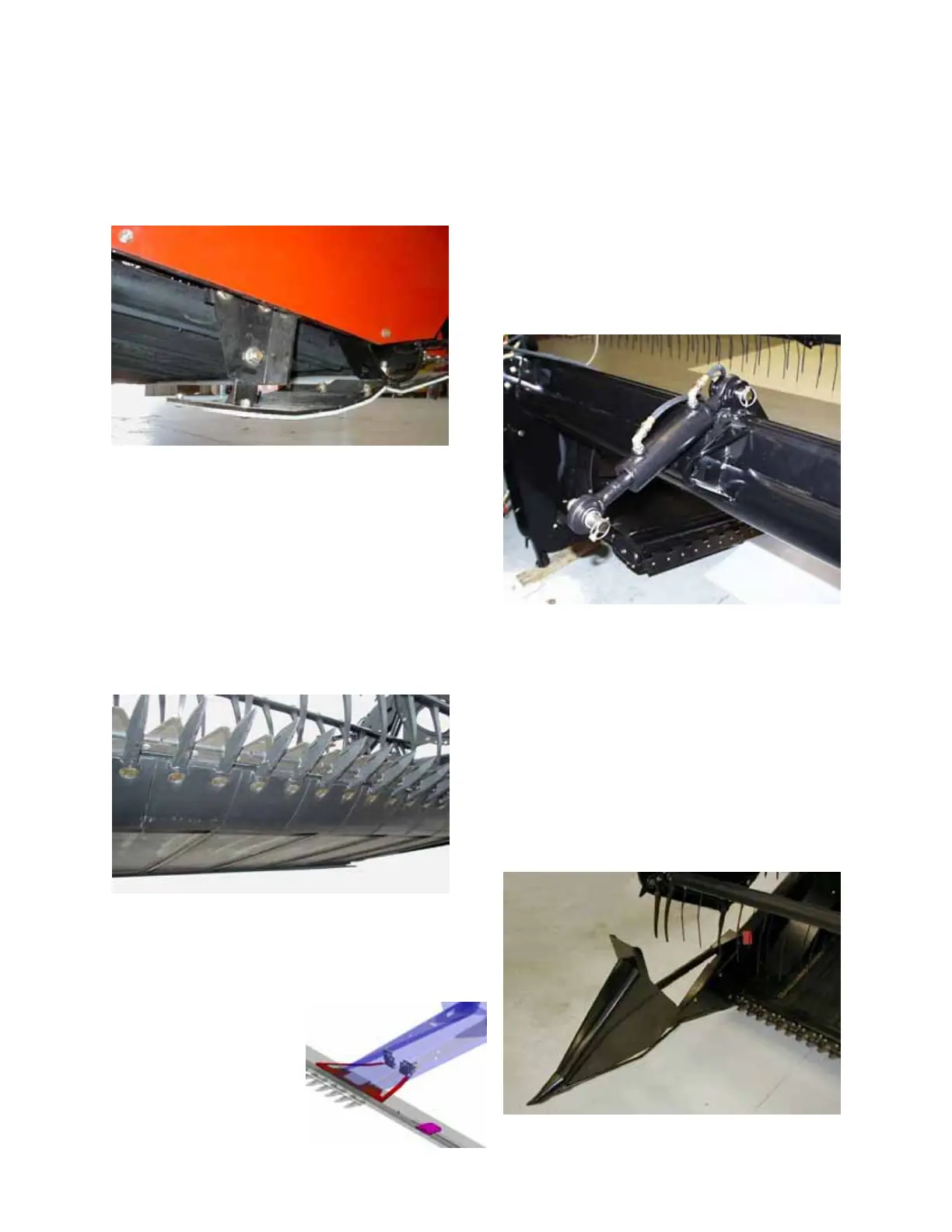MacDon 974 - Options and Attachments; Adjustable Outboard Skid Shoes with Poly Cover; Cutterbar Poly Wear Strips & Inboard Shoes with Poly Cover; Hydraulic Top Center Link