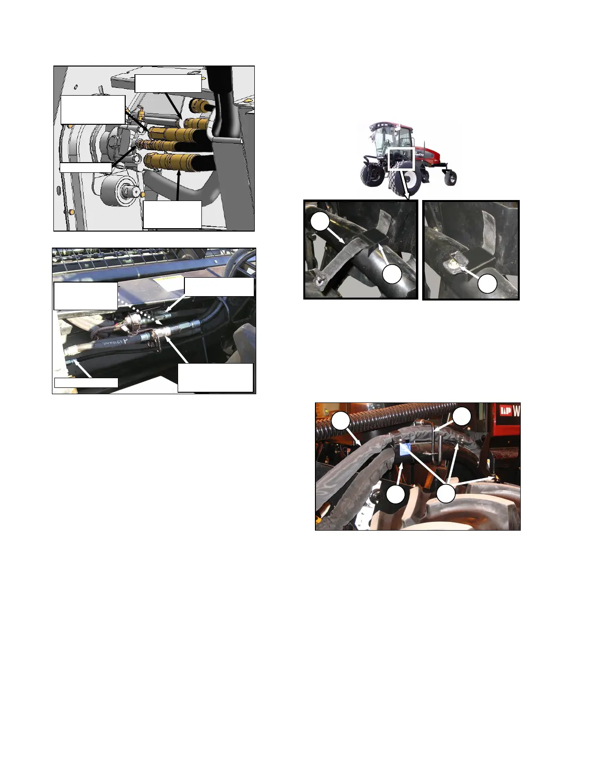 l. Install Velcro straps on windrower as follows if