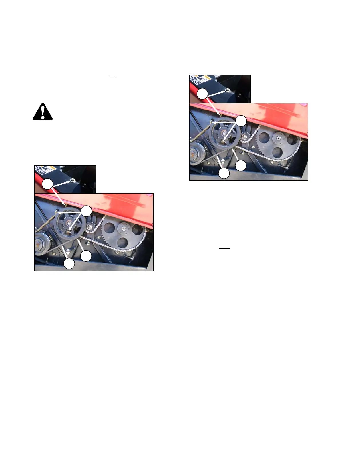 each belt (A) deflects 3/16 in. (4 mm) when a
