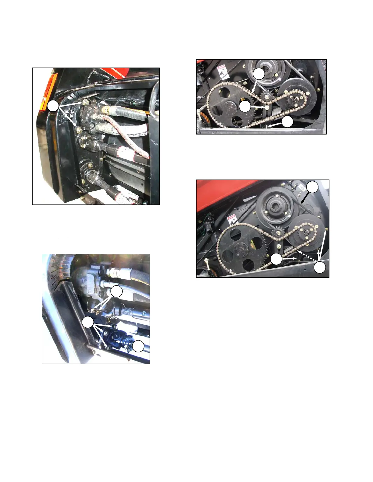 f. Remove auger drive chain (D) from small