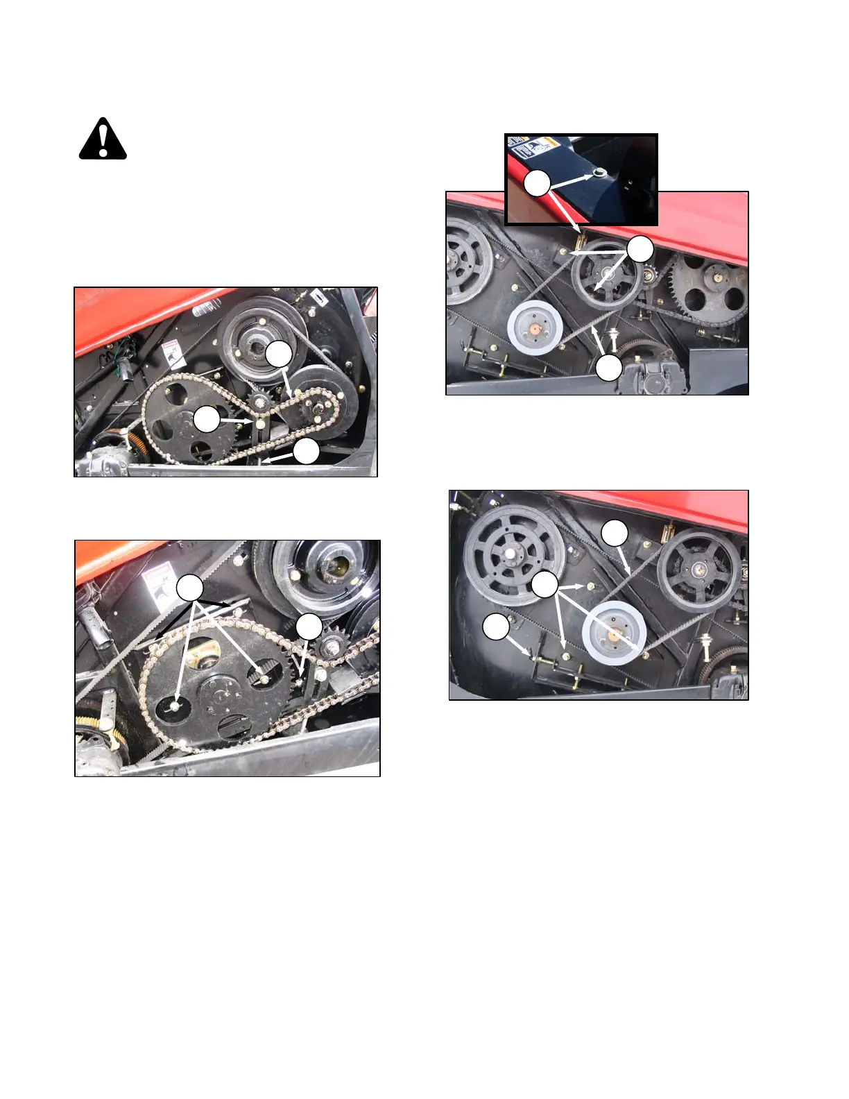b. Loosen auger drive chain (A) as follows: