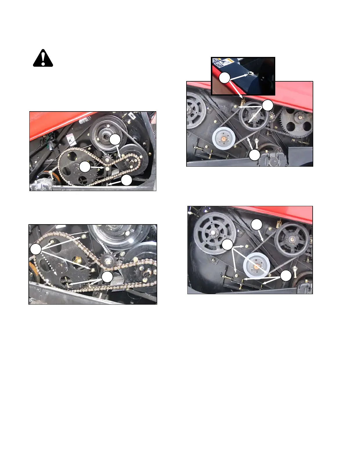 2. Turn adjuster bolt (C) to loosen chain (A).