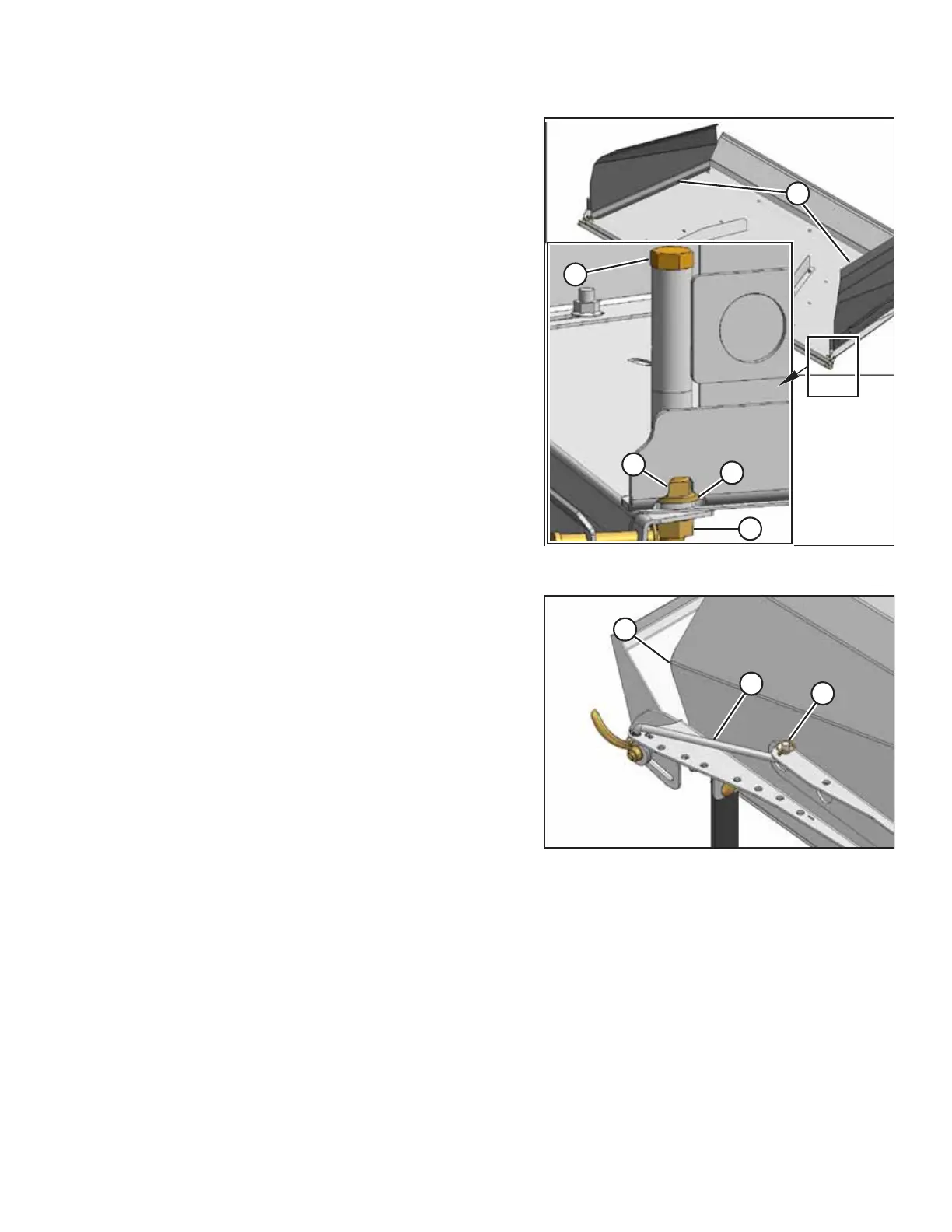 8. Tighten flange nut (A) enough to hold deflectors (C) in