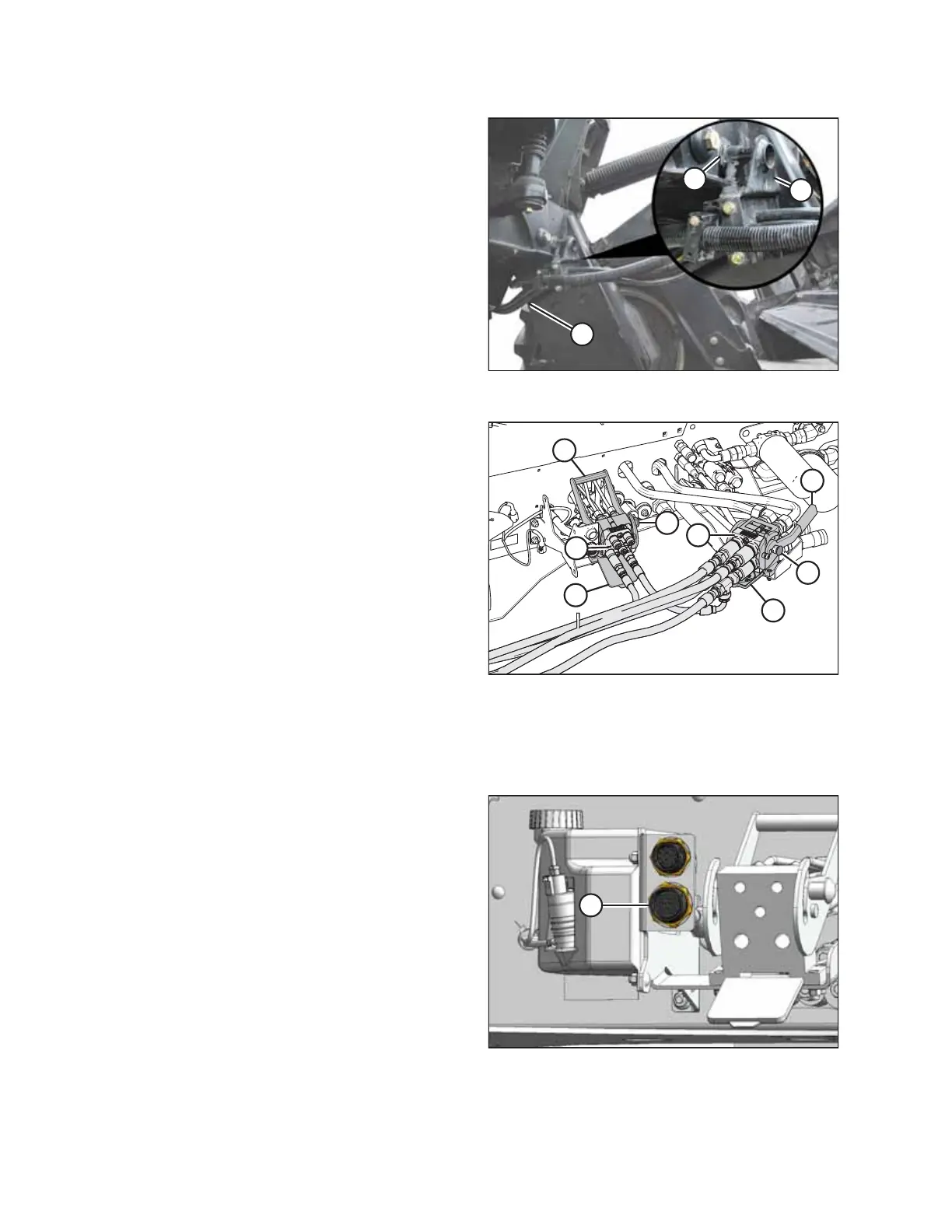 6. Insert hose support (B) into hole (A) in the windrower’s left