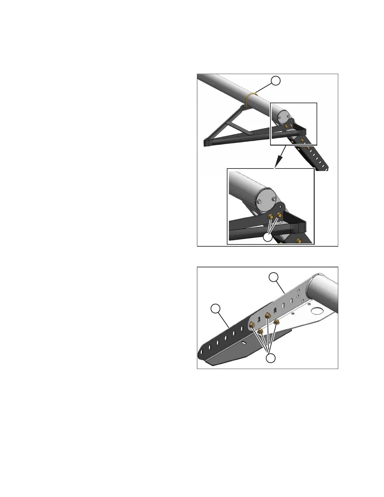 3. Remove bolts (A) attaching extensions (B) to lean bar (C),