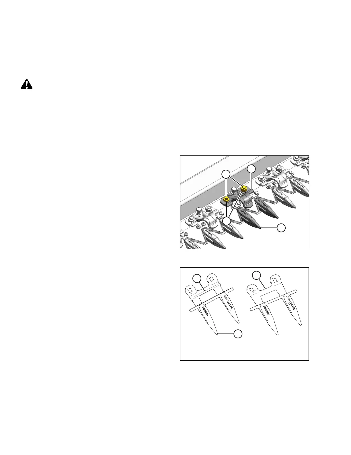 worn or broken guard can be replaced without removing knife from cutterbar. This procedure describes the replacement of