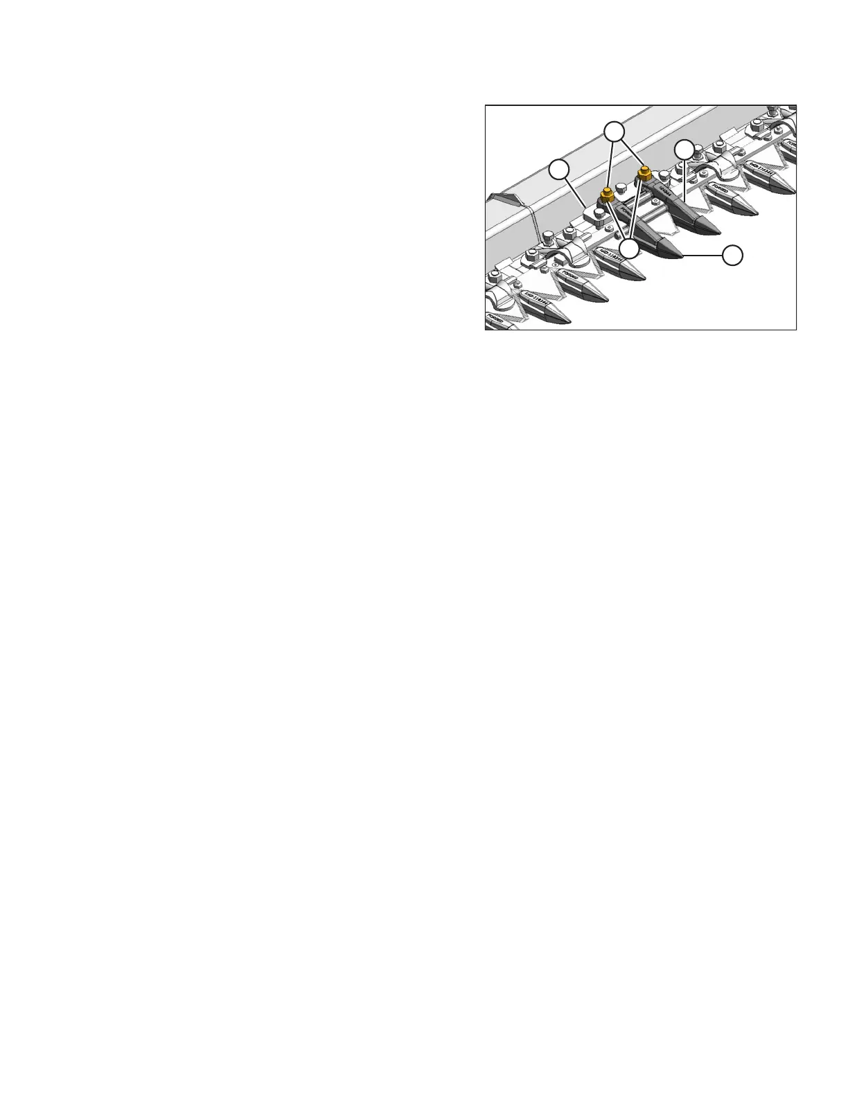 5. Position adjuster bar (E) and hold-down (D) on cutterbar