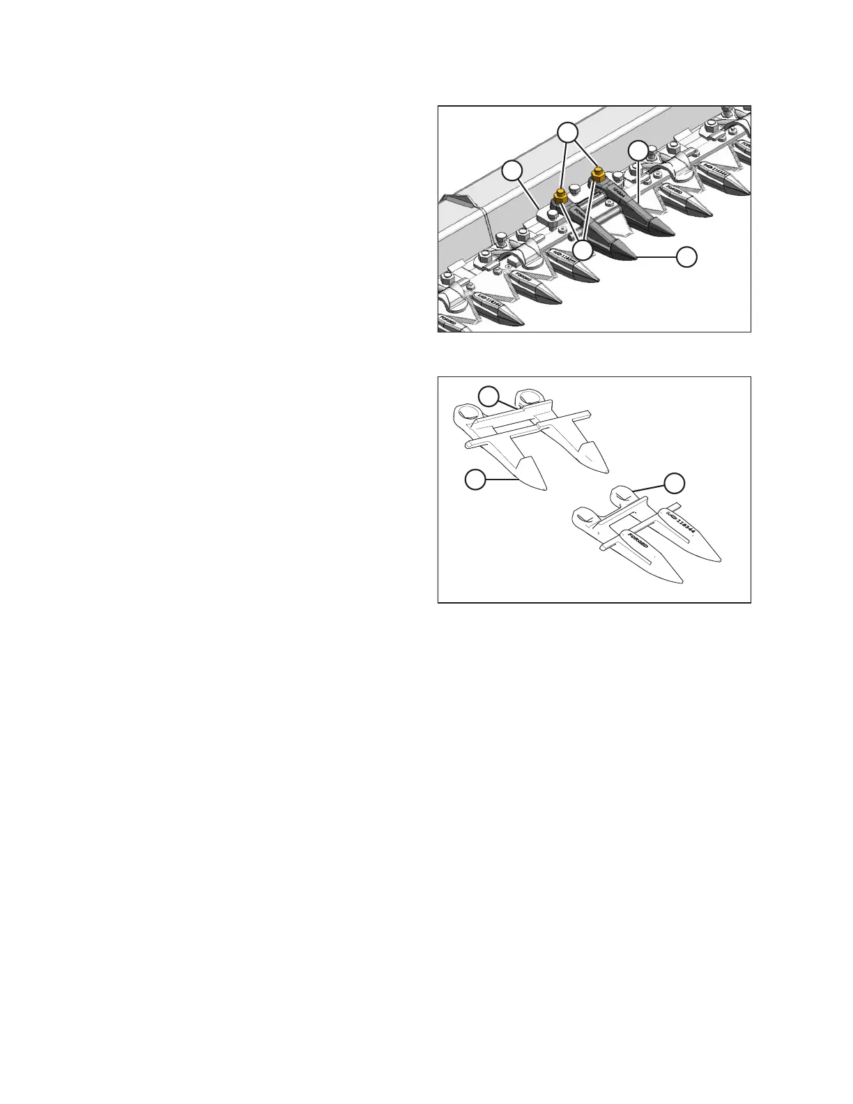 Check daily that guards are firmly bolted to the cutterbar, and not worn or broken. Replace the guards as required. A worn