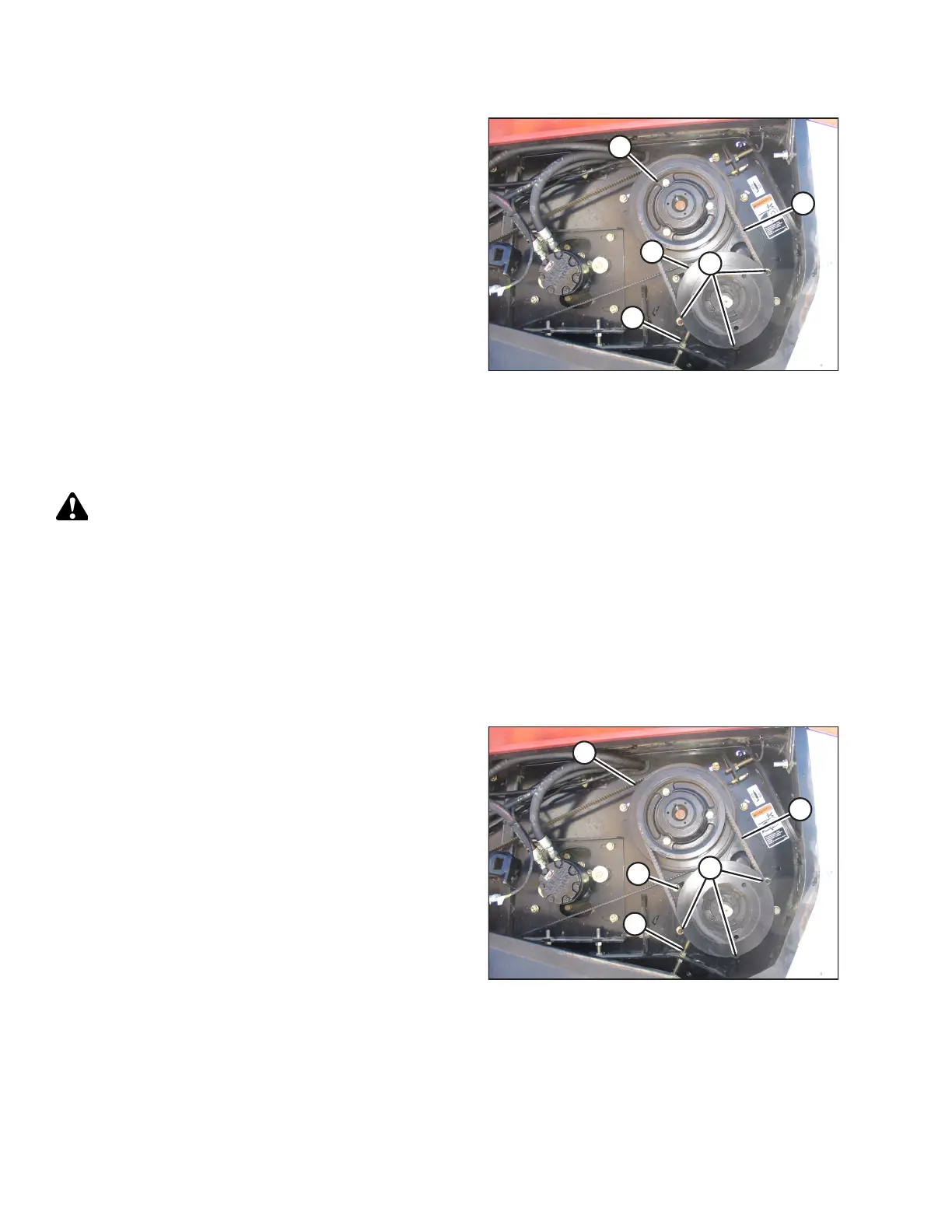 4. Turn adjuster bolt (B) so that drive belts (C) can be slipped