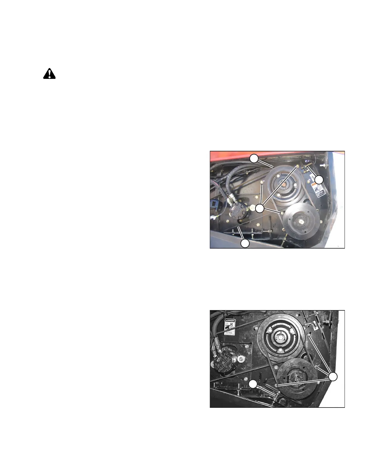 4. Loosen adjusting bolt (B) to loosen the belts.