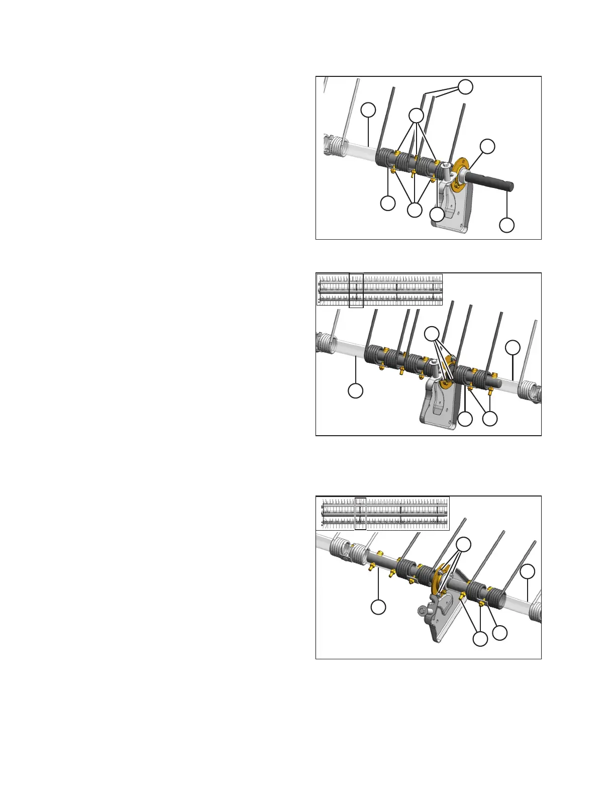 8. Install end tines (G) onto left tine bar (F) with shoulder