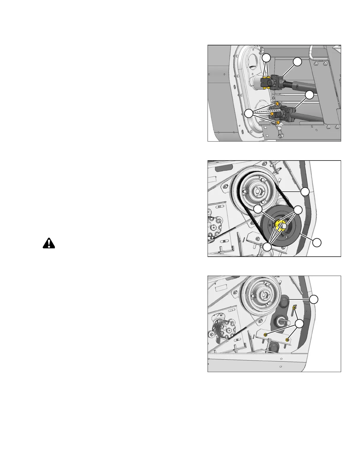 10. Remove knife drive V-belts (A). For instructions, refer to