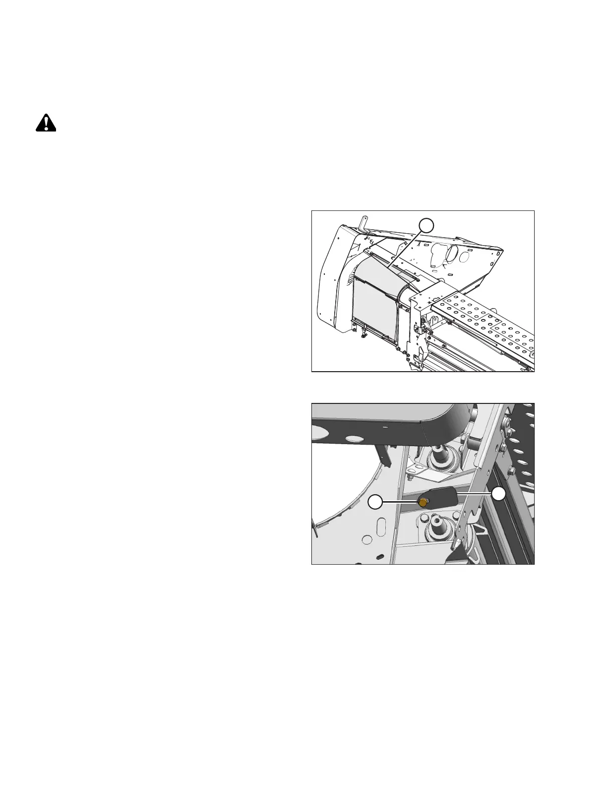 To avoid bodily injury or death from fall of raised machine, always lock-out lift cylinders before going under header for