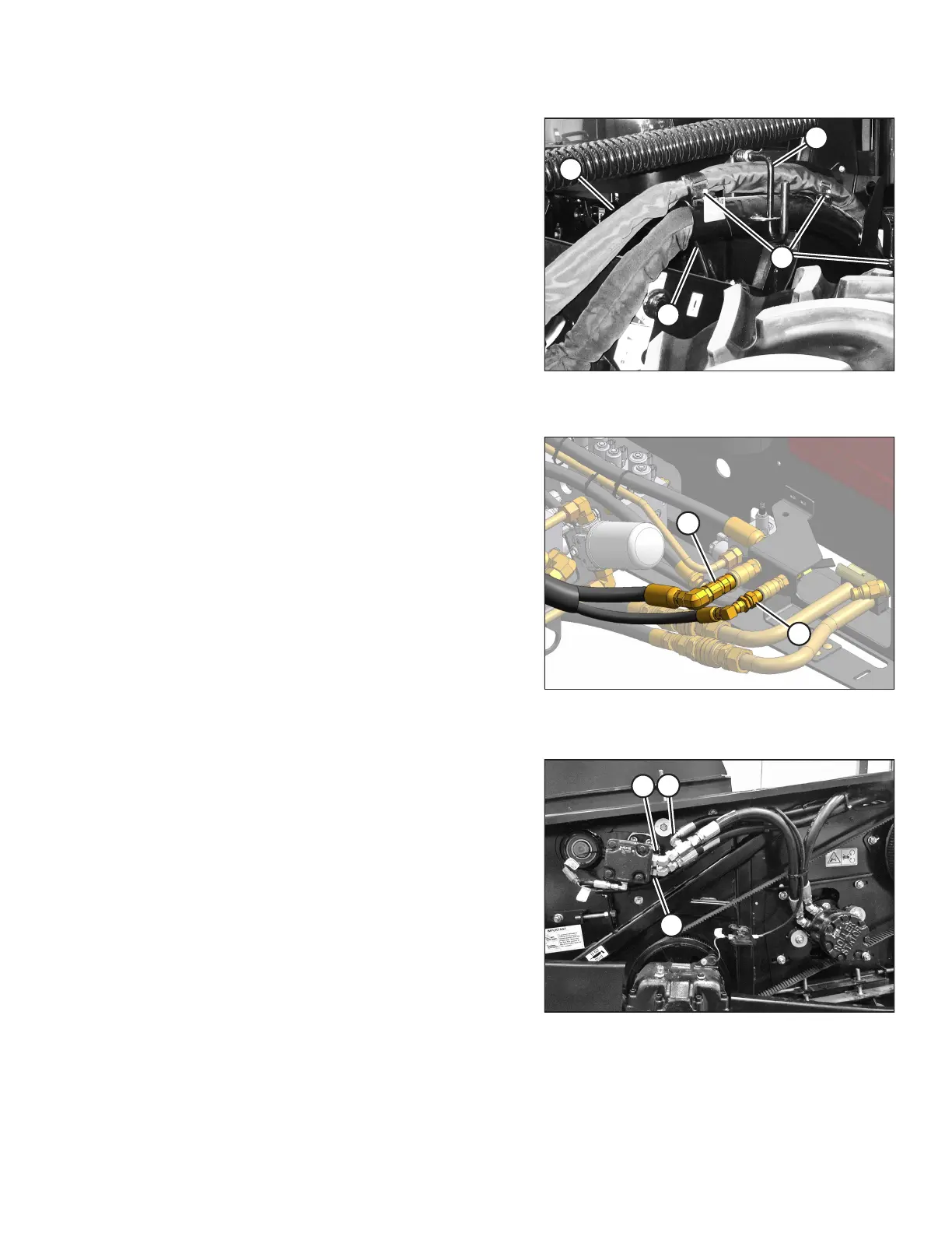 16. Push auger/reel pressure (A) and auger/reel return (B) hose